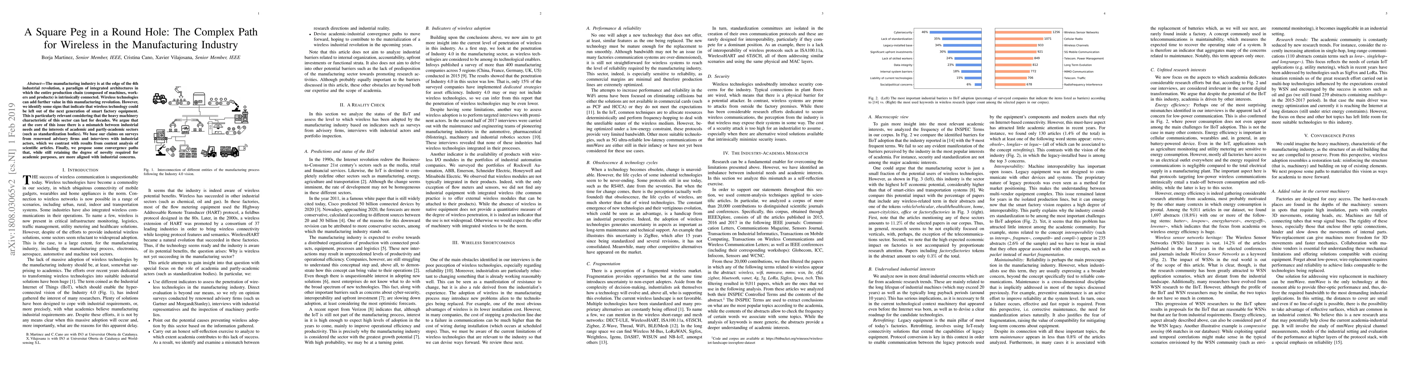 The manufacturing industry is at the edge of the 4th industrial revolution, a paradigm of integrated architectures in which the entire production chain (composed of machines, workers and products) is intrinsically connected. Wireless technologies can add further value in this manufacturing revolution. However, we identify some signs that indicate that wireless could be left out from the next generation of smart-factory equipment. This is particularly relevant considering that the heavy machinery characteristic of this sector can last for decades. We argue that at the core of this issue there is a mismatch between industrial needs and the interests of academic and partly-academic (such as standardization bodies) sectors. We base our claims on surveys from renowned advisory firms and interviews with industrial actors, which we contrast with results from content analysis of scientific articles. Finally we propose some convergence paths that, while still retaining the degree of novelty required for academic purposes, are more aligned with industrial concerns.