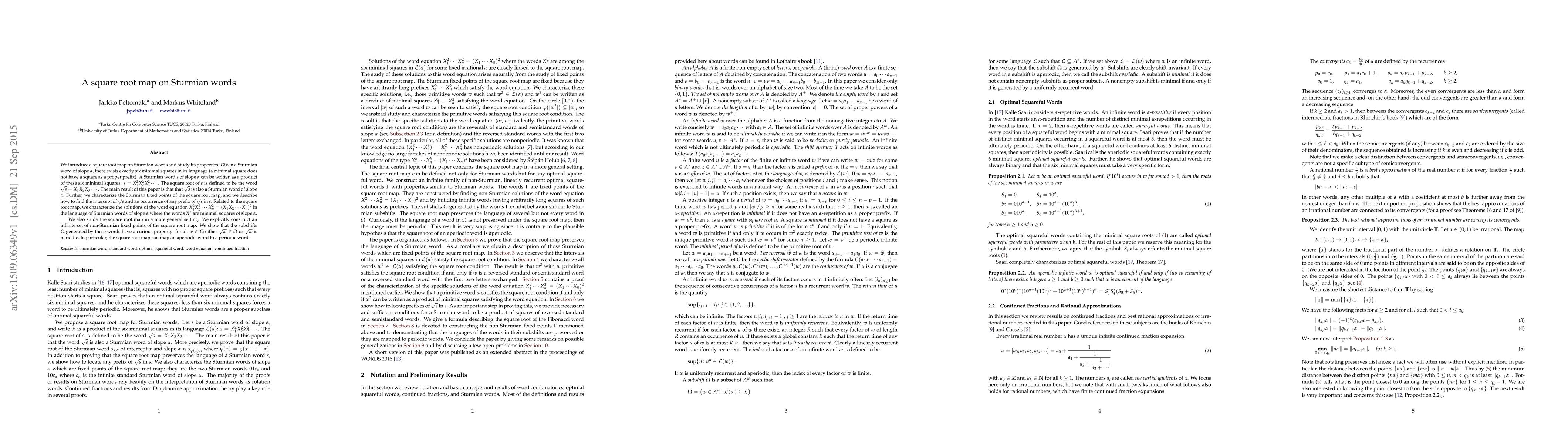 This paper introduces a square root map on Sturmian words, proving that the square root of a Sturmian word remains Sturmian. It also characterizes fixed points and solutions related to the map, and explores the square root map's behavior in a broader context, revealing that it can transform an aperiodic word into a periodic one.