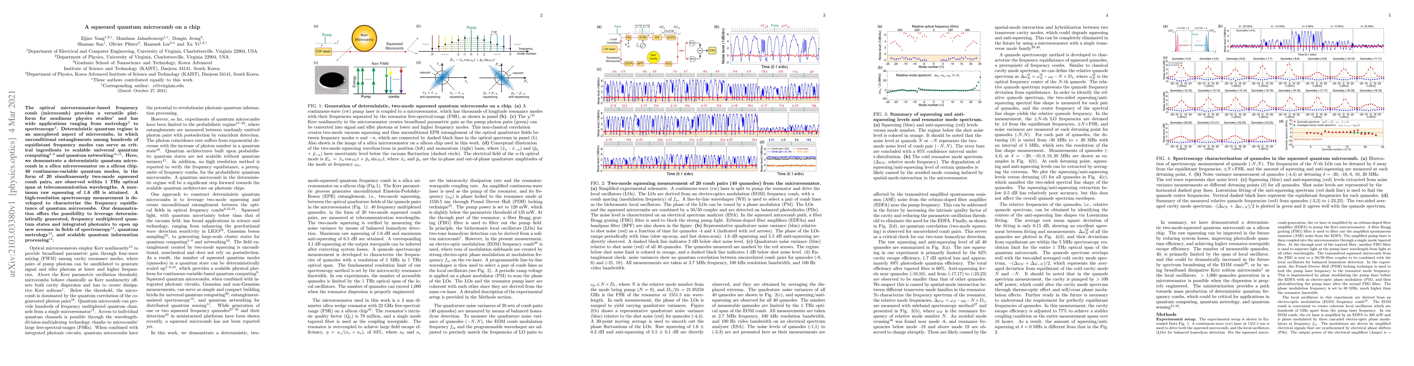 The optical microresonator-based frequency comb (microcomb) provides a versatile platform for nonlinear physics studies and has wide applications ranging from metrology to spectroscopy. Deterministic quantum regime is an unexplored aspect of microcombs, in which unconditional entanglements among hundreds of equidistant frequency modes can serve as critical ingredients to scalable universal quantum computing and quantum networking. Here, we demonstrate a deterministic quantum microcomb in a silica microresonator on a silicon chip. 40 continuous-variable quantum modes, in the form of 20 simultaneously two-mode squeezed comb pairs, are observed within 1 THz optical span at telecommunication wavelengths. A maximum raw squeezing of 1.6 dB is attained. A high-resolution spectroscopy measurement is developed to characterize the frequency equidistance of quantum microcombs. Our demonstration offers the possibility to leverage deterministically generated, frequency multiplexed quantum states and integrated photonics to open up new avenues in fields of spectroscopy, quantum metrology, and scalable quantum information processing.