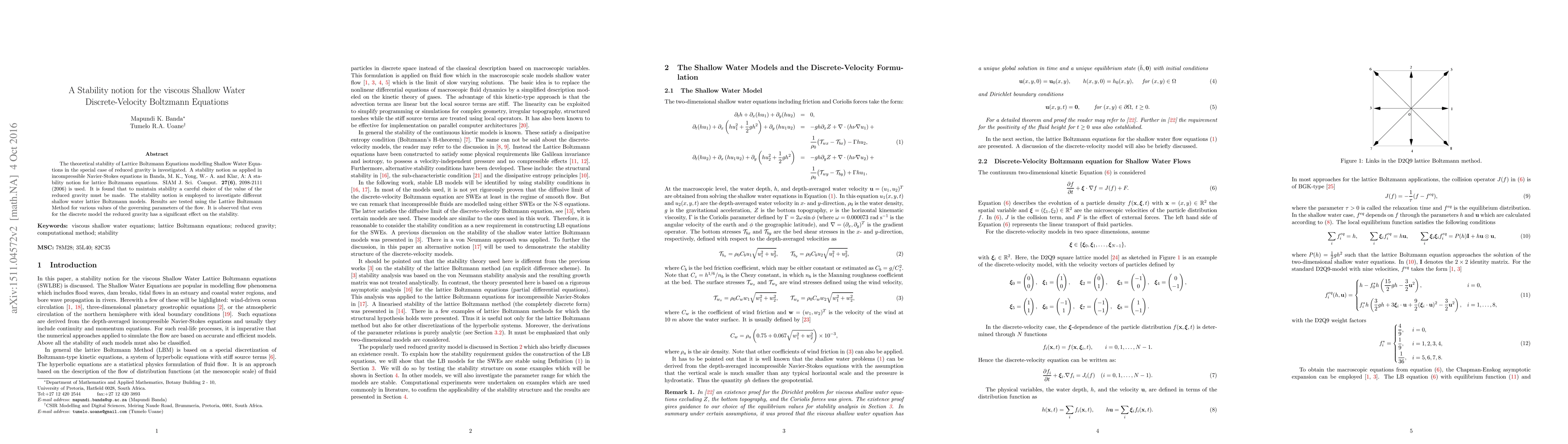 This paper investigates the stability of Lattice Boltzmann Equations for viscous Shallow Water Equations under reduced gravity, defining a stability notion similar to that used for incompressible Navier-Stokes equations. It finds that careful selection of reduced gravity values is crucial for maintaining stability, and tests show that reduced gravity significantly impacts stability in the discrete model.