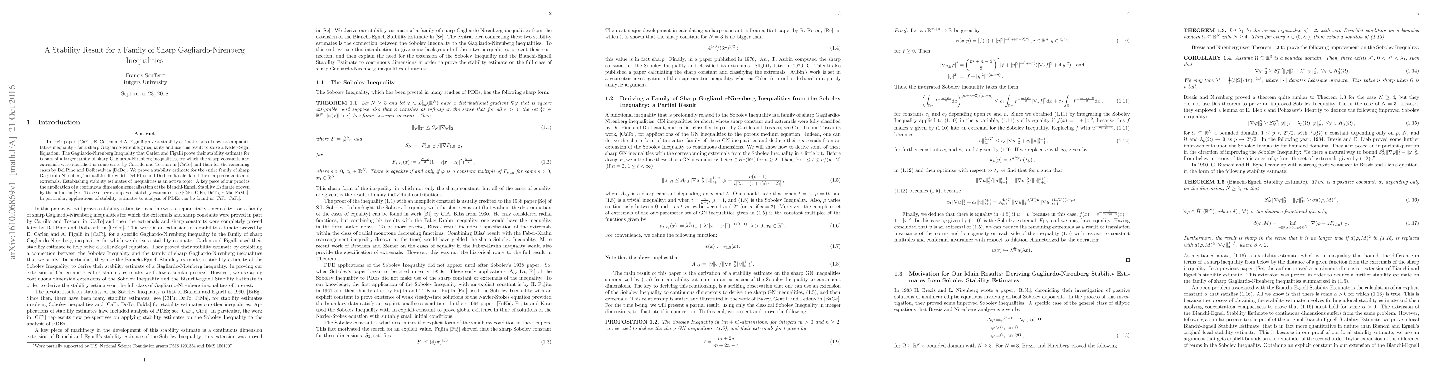 This paper establishes a stability estimate for a family of sharp Gagliardo-Nirenberg inequalities, extending previous work by Del Pino and Dolbeault, and utilizes a continuous dimension generalization of the Bianchi-Egnell Stability Estimate in the proof.