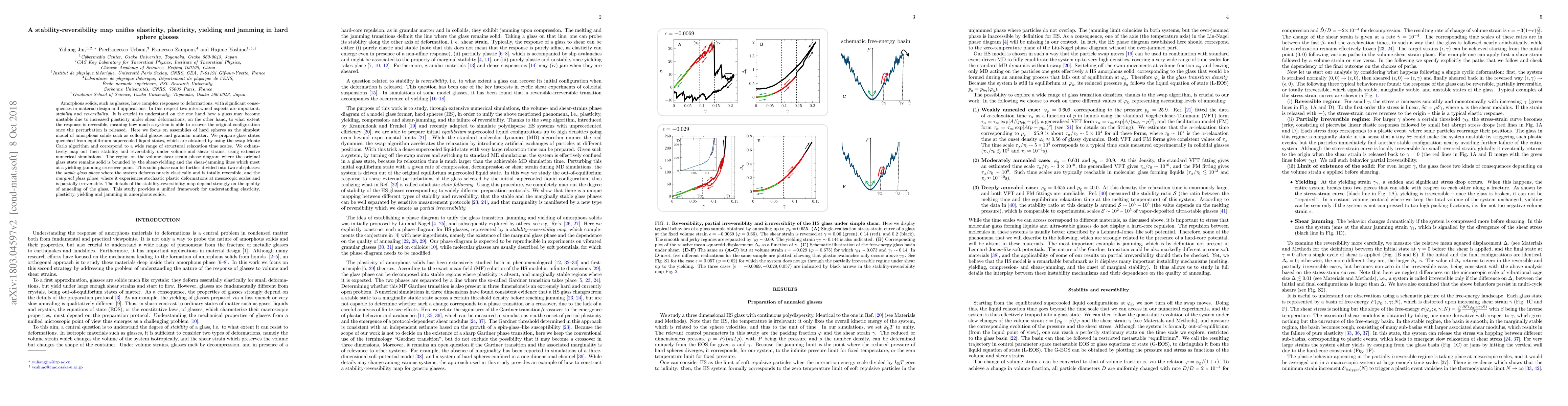 This paper presents a stability-reversibility map for hard sphere glasses, revealing how amorphous solids like colloidal glasses respond to deformations. The map delineates regions of elasticity, plasticity, yielding, and jamming, providing a unified framework for understanding these complex behaviors in relation to stability and reversibility.