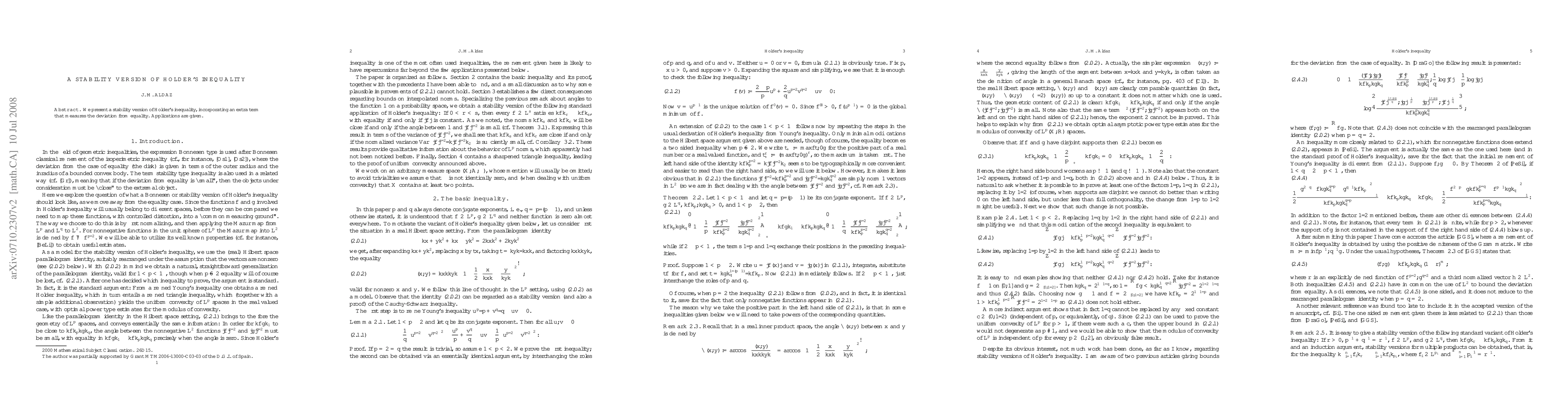 Summary: This paper introduces a stability version of Hölder's inequality, which includes an additional term to quantify how much a given set of values deviates from satisfying the equality condition. The authors also provide applications demonstrating the practical utility of this new inequality.
