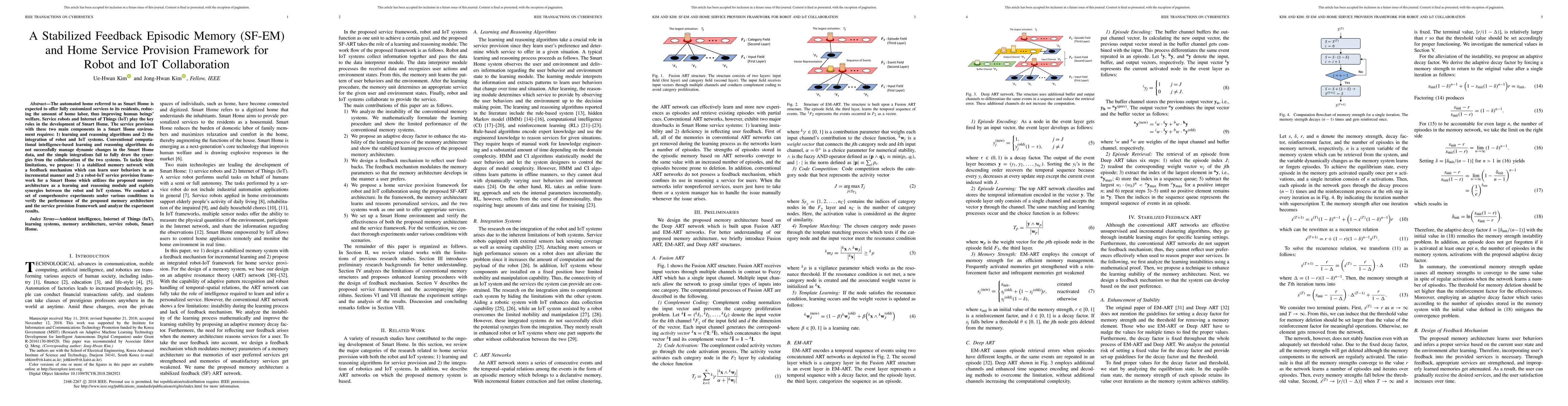 This paper proposes a stabilized feedback episodic memory (SF-EM) network and a collaborative framework for service robots and IoT systems in Smart Homes to enhance personalized service provision and improve resident welfare. The framework addresses limitations in existing learning algorithms and integration methods by leveraging the SF-EM for incremental learning and a synergistic robot-IoT service provision model.