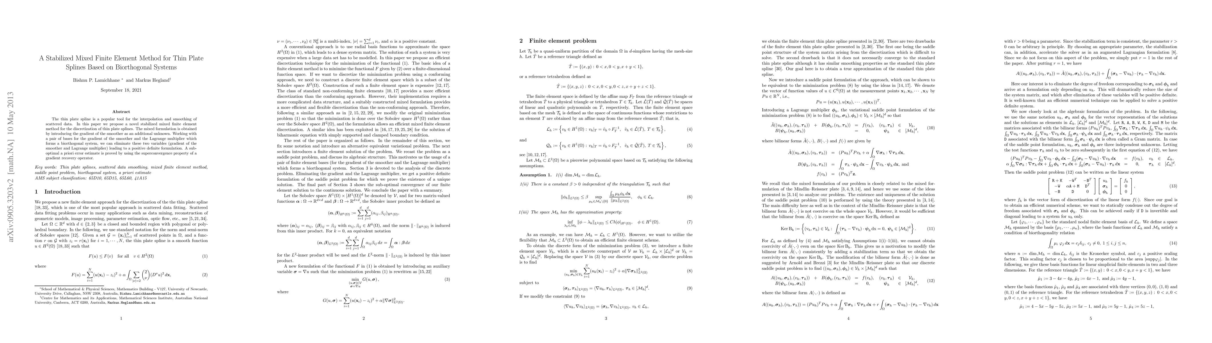 The use of biorthogonal systems in stabilized mixed finite element methods provides a new approach to solving thin plates problems