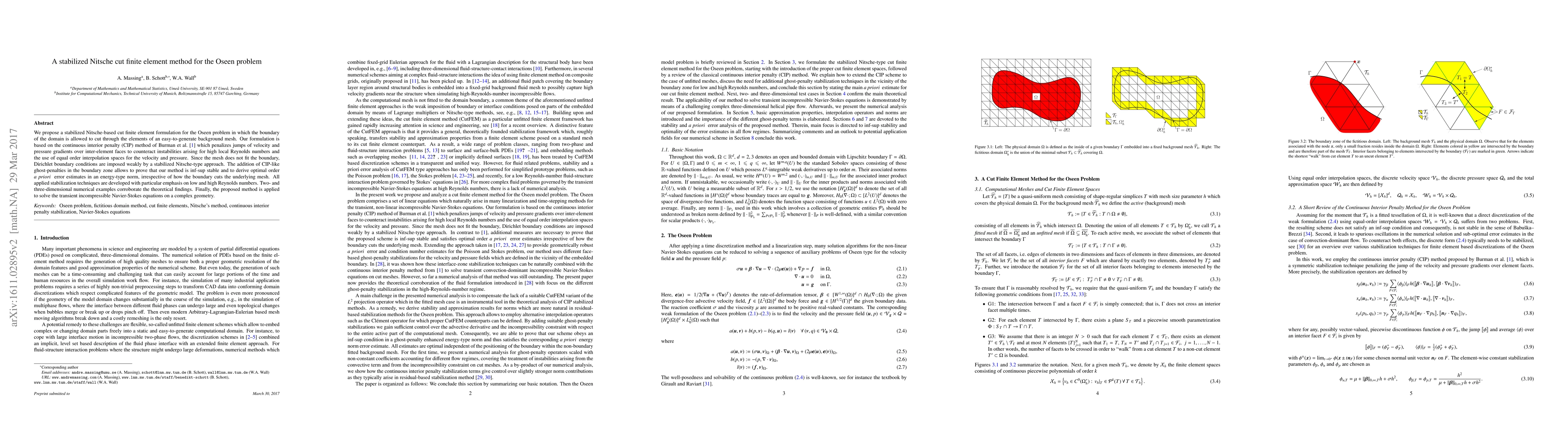 This paper introduces a stabilized Nitsche cut finite element method for solving the Oseen problem, where the domain boundary cuts through the mesh. The method combines continuous interior penalty and a Nitsche-type approach to ensure stability and optimal error estimates, validated through numerical examples and application to transient incompressible Navier-Stokes equations.