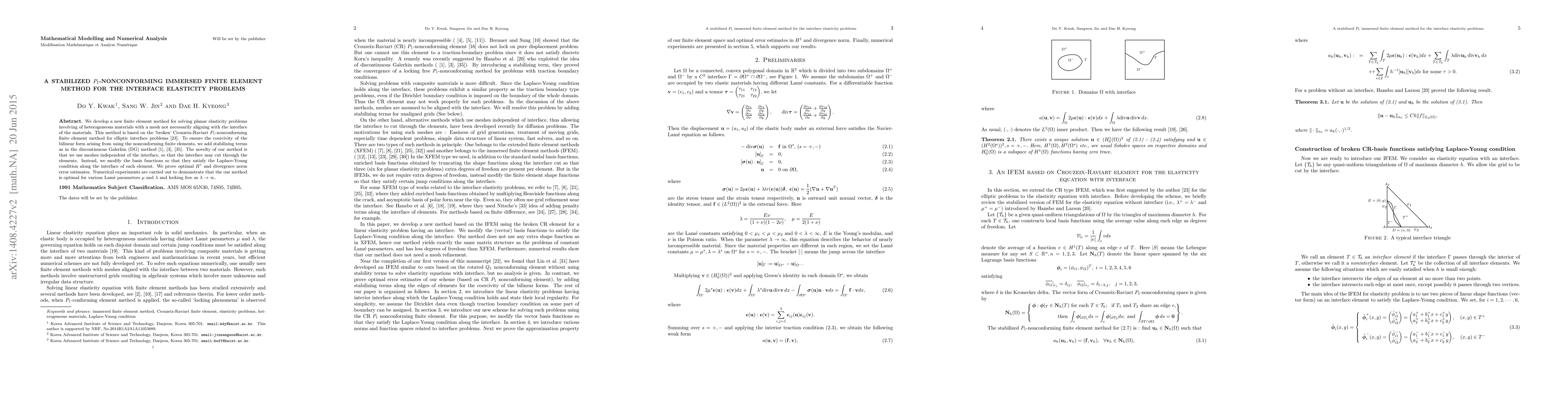 This paper introduces a stabilized $P_1$ immersed finite element method for planar elasticity problems with non-aligned interfaces. It modifies Crouzeix-Raviart basis functions to satisfy the Laplace-Young condition along interfaces, ensuring optimal error estimates and numerical stability without mesh alignment.