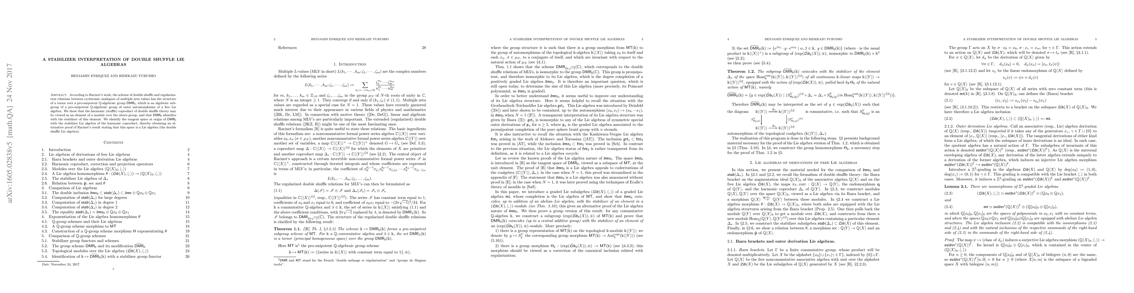 This paper shows that double shuffle Lie algebras can be viewed as modules over a specific group, and the stabilizer of this module identifies with the Lie algebra itself, providing an alternative proof of its existence.