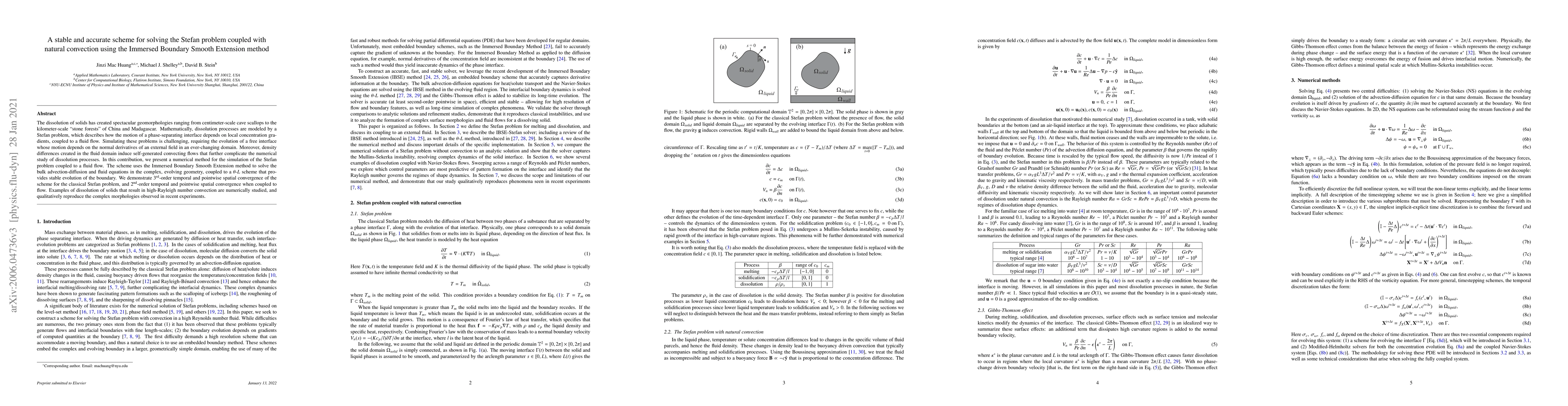 This paper proposes a stable and accurate numerical scheme using the Immersed Boundary Smooth Extension method to solve the Stefan problem coupled with natural convection. The method demonstrates high-order convergence and accurately simulates dissolution processes, reproducing complex geomorphological morphologies observed in experiments.