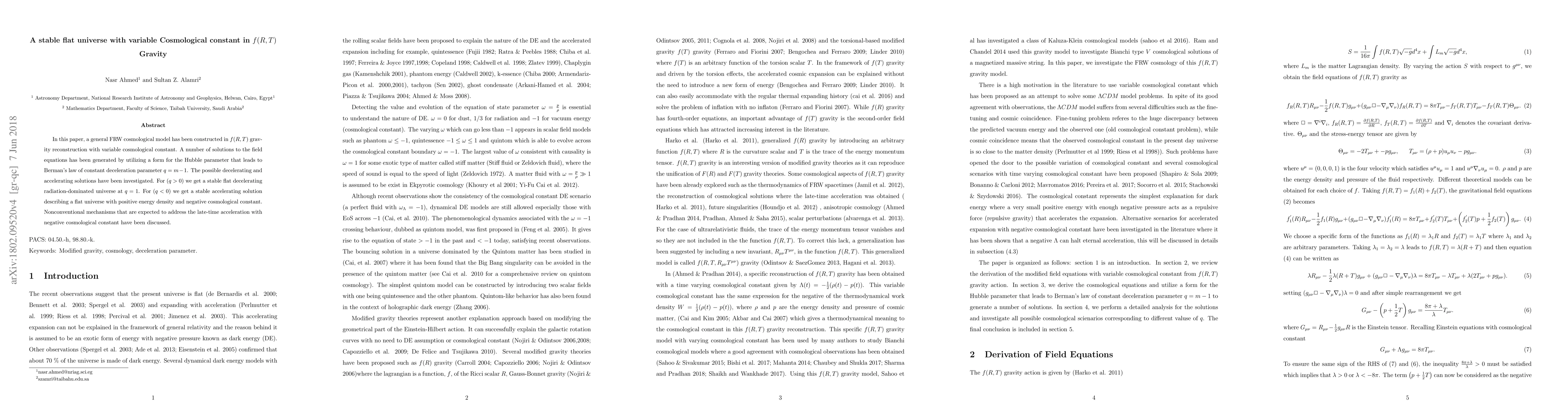 This paper constructs a FRW cosmological model in $f(R,T)$ gravity with a variable cosmological constant, exploring both decelerating and accelerating solutions. It finds stable, flat universes: a decelerating radiation-dominated universe for $q=1$ and an accelerating universe with positive energy density and negative cosmological constant for $q<0$.
