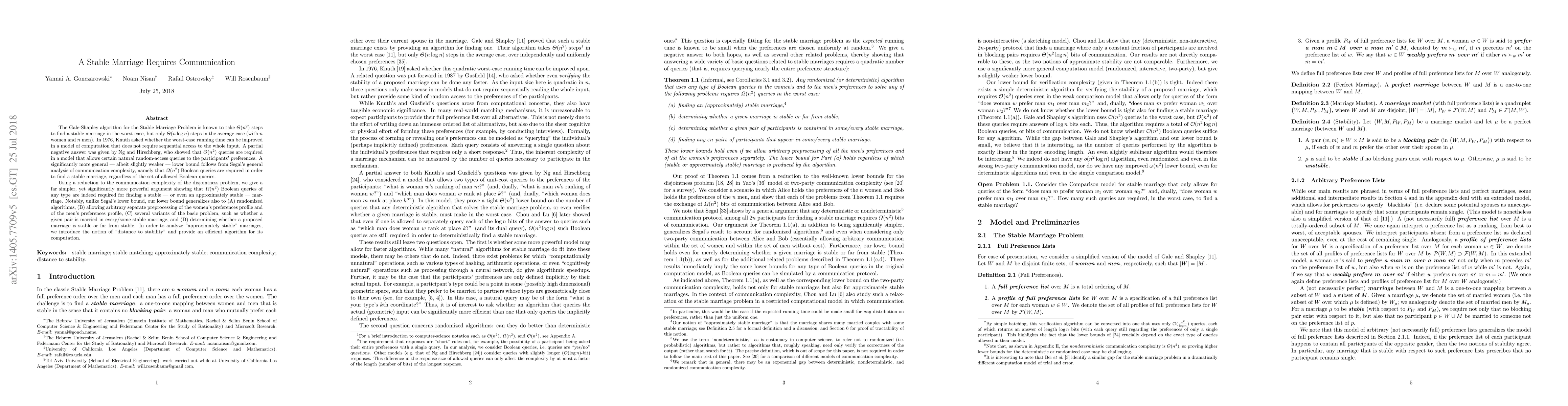 The paper uses a reduction to the communication complexity of the disjointness problem to prove lower bounds on the communication complexity of finding a stable marriage, considering various models of computation.