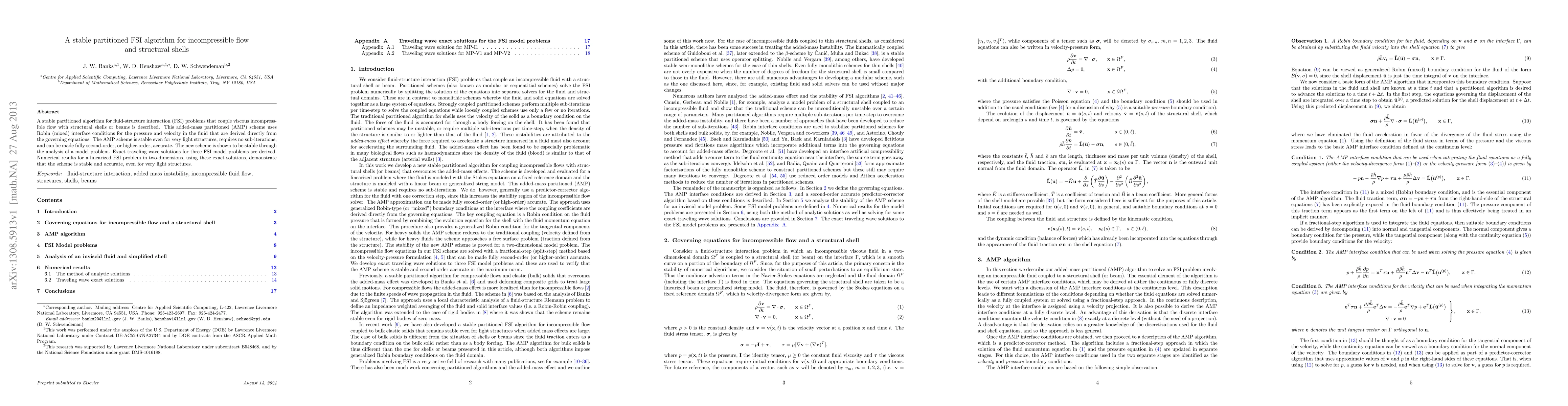 A stable partitioned algorithm for fluid-structure interaction (FSI) problems that couple viscous incompressible flow with structural shells or beams is described. This added-mass partitioned (AMP) scheme uses Robin (mixed) interface conditions for the pressure and velocity in the fluid that are derived directly from the governing equations. The AMP scheme is stable even for very light structures, requires no sub-iterations, and can be made fully second-order, or higher-order, accurate. The new scheme is shown to be stable through the analysis of a model problem. Exact traveling wave solutions for three FSI model problems are derived. Numerical results for a linearized FSI problem in two-dimensions, using these exact solutions, demonstrate that the scheme is stable and accurate, even for very light structures.