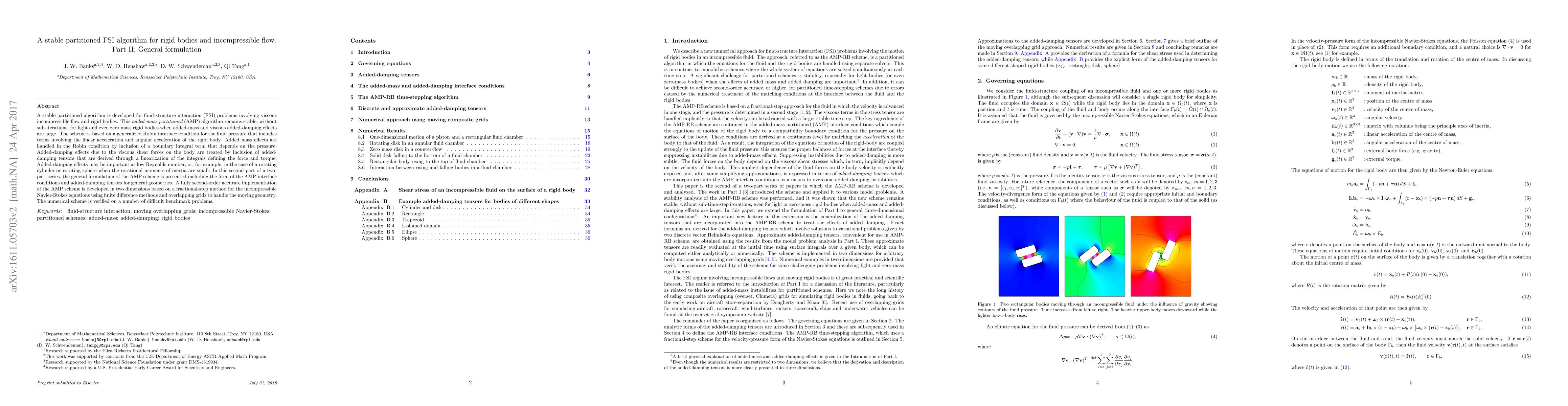 This paper presents a stable partitioned algorithm for fluid-structure interaction (FSI) involving rigid bodies and incompressible flow, termed the added-mass partitioned (AMP) algorithm. The AMP scheme is stable without sub-iterations and includes generalized Robin interface conditions to handle added mass and damping effects, validated through a second-order accurate implementation in two dimensions.