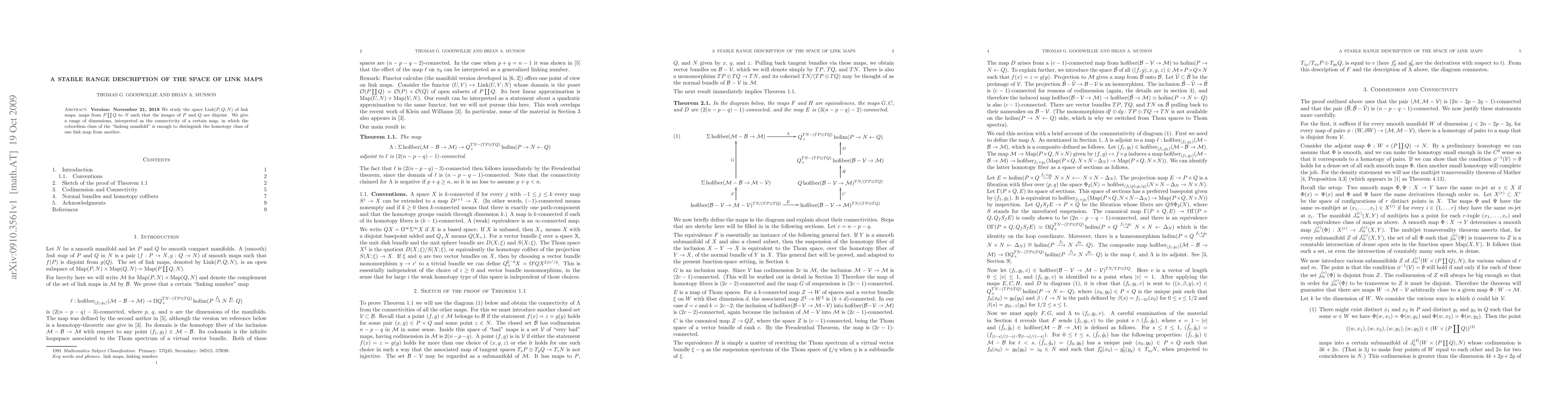 This paper examines the space of link maps between disjoint manifolds P and Q to a target manifold N, showing that the cobordism class of the linking manifold can distinguish the homotopy classes of these maps within a specific dimensional range.