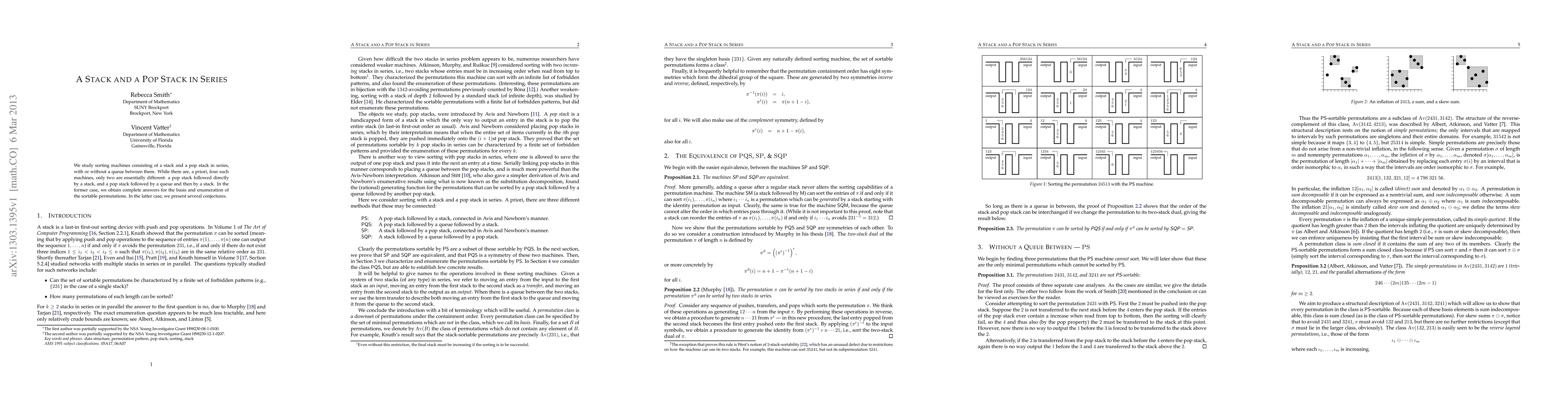 We study sorting machines consisting of a stack and a pop stack in series, with or without a queue between them. While there are, a priori, four such machines, only two are essentially different: a pop stack followed directly by a stack, and a pop stack followed by a queue and then by a stack. In the former case, we obtain complete answers for the basis and enumeration of the sortable permutations. In the latter case, we present several conjectures.