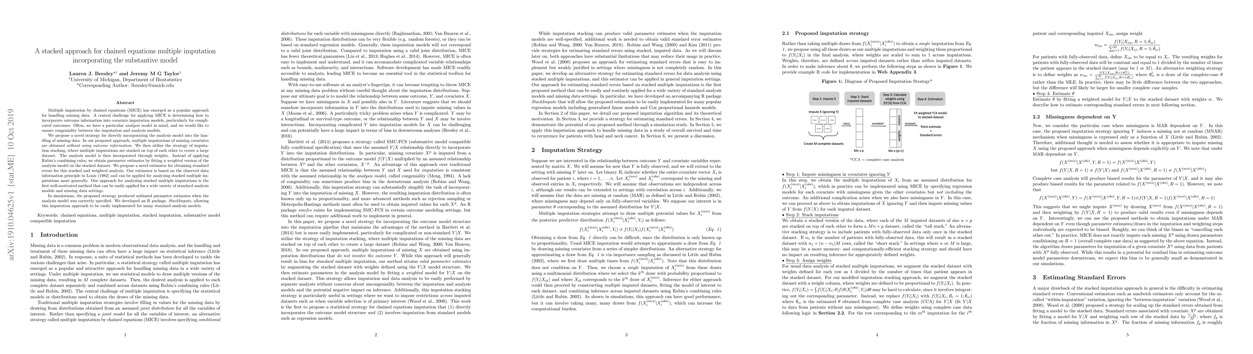 This paper proposes a stacked approach for chained equations multiple imputation that incorporates the substantive analysis model through weights on a stacked dataset, rather than during the imputation process. The method produces unbiased estimates when the analysis model is correctly specified and is implemented in the R package StackImpute.
