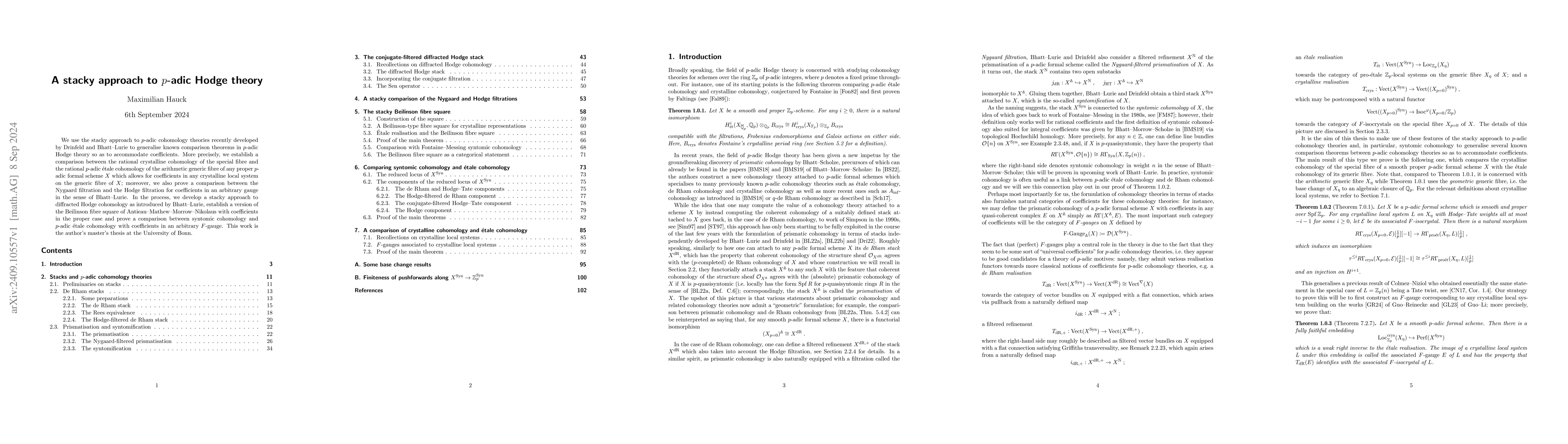 We use the stacky approach to $p$-adic cohomology theories recently developed by Drinfeld and Bhatt--Lurie to generalise known comparison theorems in $p$-adic Hodge theory so as to accommodate coefficients. More precisely, we establish a comparison between the rational crystalline cohomology of the special fibre and the rational $p$-adic \'etale cohomology of the arithmetic generic fibre of any proper $p$-adic formal scheme $X$ which allows for coefficients in any crystalline local system on the generic fibre of $X$; moreover, we also prove a comparison between the Nygaard filtration and the Hodge filtration for coefficients in an arbitrary gauge in the sense of Bhatt--Lurie. In the process, we develop a stacky approach to diffracted Hodge cohomology as introduced by Bhatt--Lurie, establish a version of the Beilinson fibre square of Antieau--Mathew--Morrow--Nikolaus with coefficients in the proper case and prove a comparison between syntomic cohomology and $p$-adic \'etale cohomology with coefficients in an arbitrary $F$-gauge. This work is the author's master's thesis at the University of Bonn.