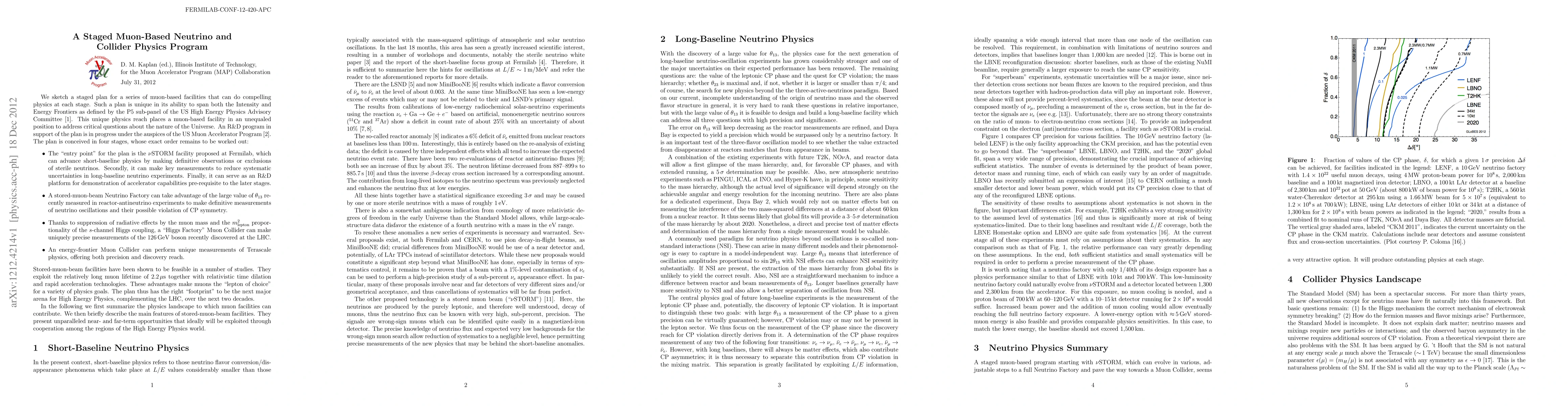 This paper outlines a phased approach for developing muon-based facilities that progressively enhance neutrino and collider physics, spanning both the Intensity and Energy Frontiers to tackle fundamental questions about the universe. Each stage offers unique opportunities to advance our understanding of fundamental physics.