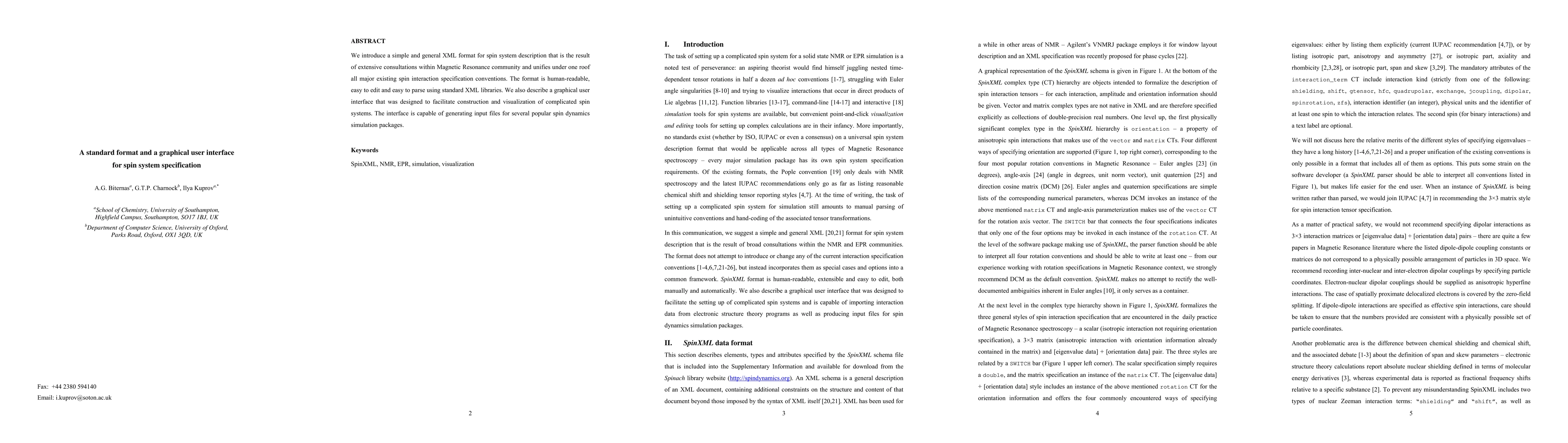This paper presents a new XML format for describing spin systems, unified from existing conventions and designed for ease of editing and parsing. It also introduces a graphical user interface to construct and visualize spin systems, which can generate input files for popular simulation packages.