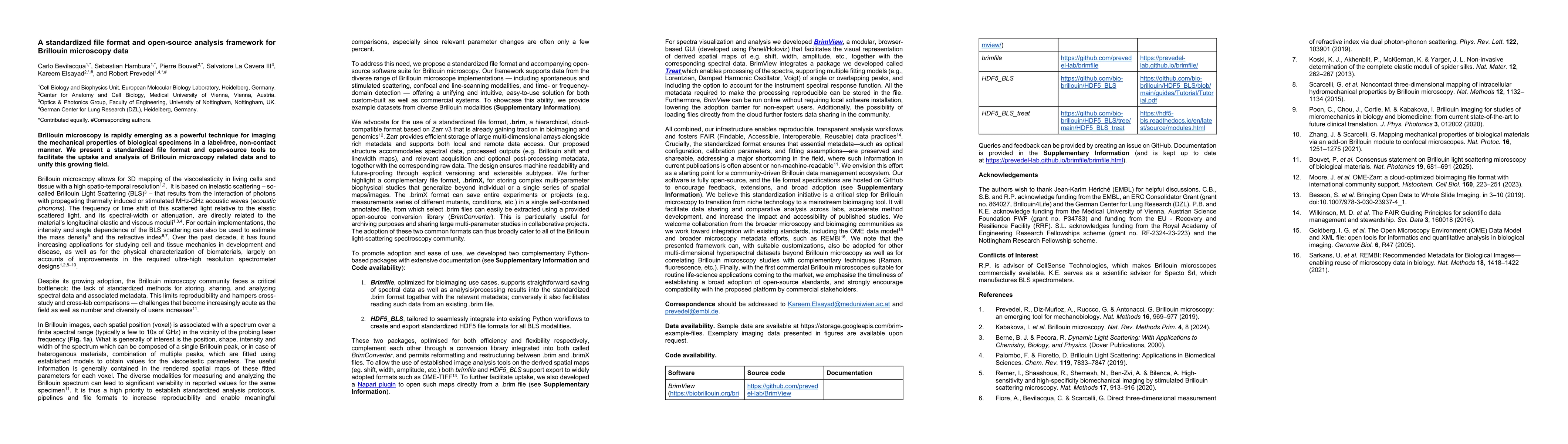 Brillouin microscopy is rapidly emerging as a powerful technique for imaging the mechanical properties of biological specimens in a label-free, non-contact manner. We present a standardized file format and open-source tools to facilitate the uptake and analysis of Brillouin microscopy related data and to unify this growing field.