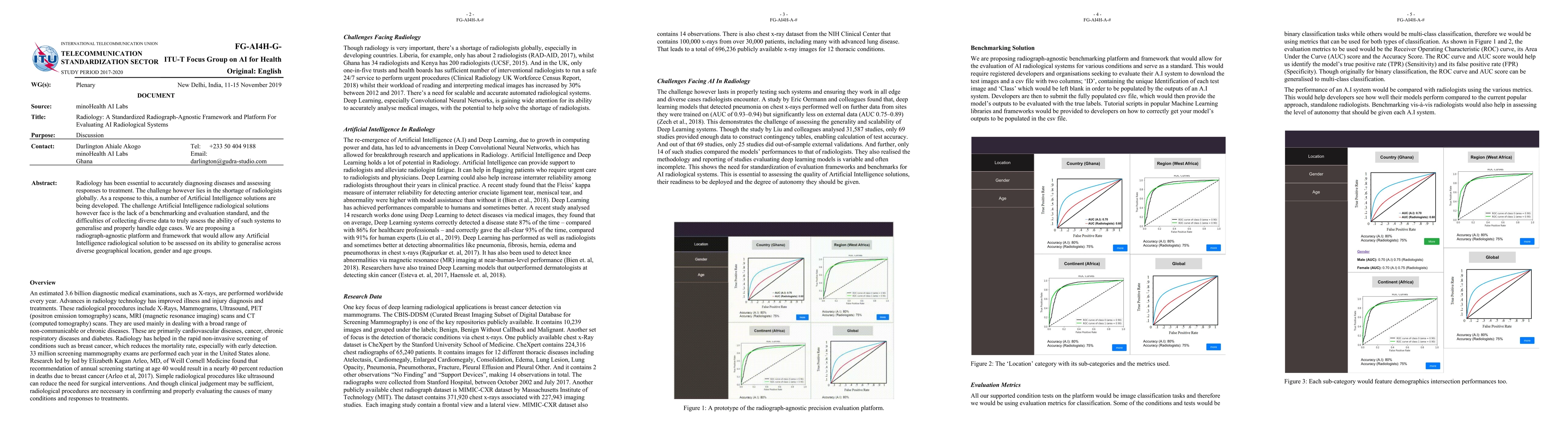 Radiology has been essential to accurately diagnosing diseases and assessing responses to treatment. The challenge however lies in the shortage of radiologists globally. As a response to this, a number of Artificial Intelligence solutions are being developed. The challenge Artificial Intelligence radiological solutions however face is the lack of a benchmarking and evaluation standard, and the difficulties of collecting diverse data to truly assess the ability of such systems to generalise and properly handle edge cases. We are proposing a radiograph-agnostic platform and framework that would allow any Artificial Intelligence radiological solution to be assessed on its ability to generalise across diverse geographical location, gender and age groups.