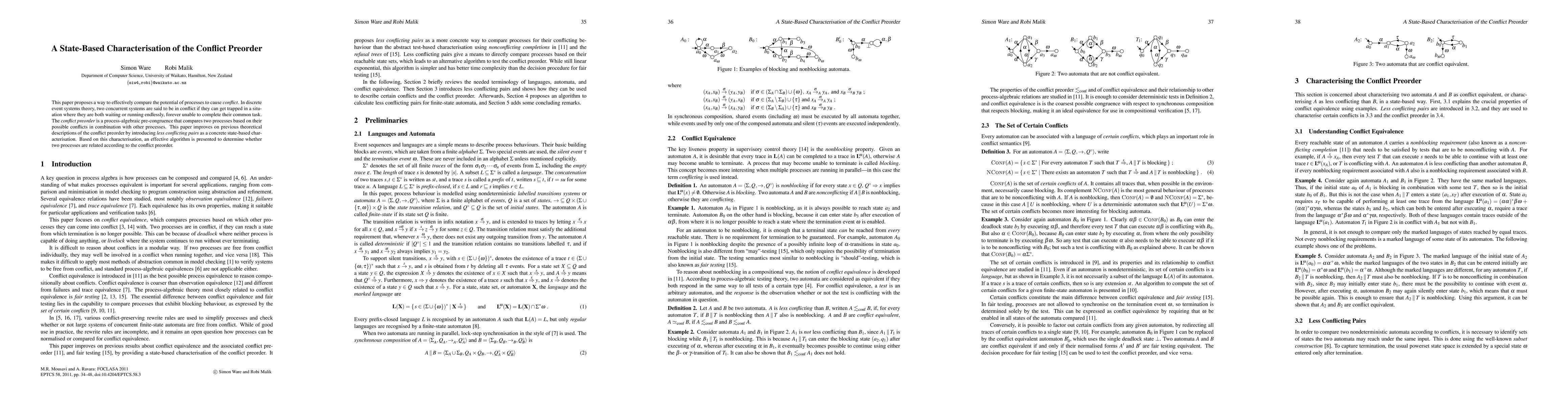 This paper introduces a state-based method to compare the conflict potential of concurrent systems, enhancing the conflict preorder concept. It presents an algorithm to effectively determine if two processes are conflict-related, based on less conflicting pairs characterization.