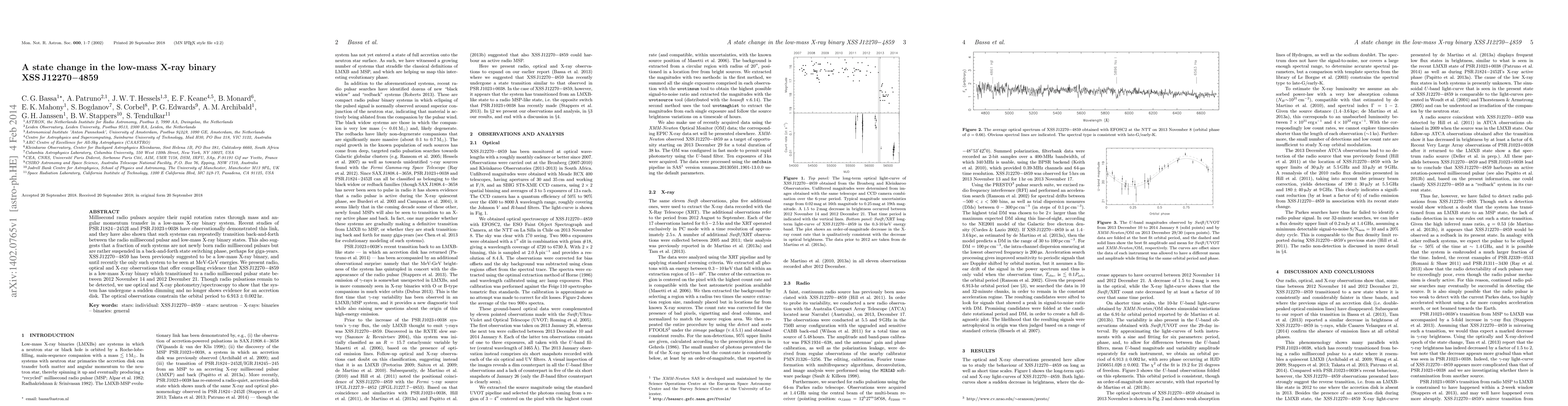 This paper presents evidence showing that XSS J12270-4859 transitioned from a low-mass X-ray binary to a radio millisecond pulsar state between November 14 and December 21, 2012, based on radio, optical, and X-ray observations indicating a sudden dimming and absence of an accretion disk. The optical data constrain the system's orbital period to 6.913±0.002 hours.