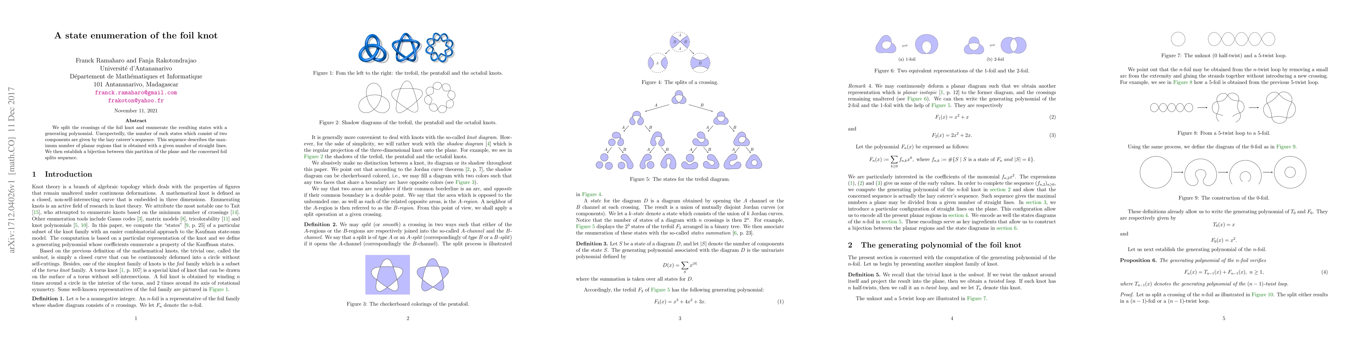 We split the crossings of the foil knot and enumerate the resulting states with a generating polynomial. Unexpectedly, the number of such states which consist of two components are given by the lazy caterer's sequence. This sequence describes the maximum number of planar regions that is obtained with a given number of straight lines. We then establish a bijection between this partition of the plane and the concerned foil splits sequence.