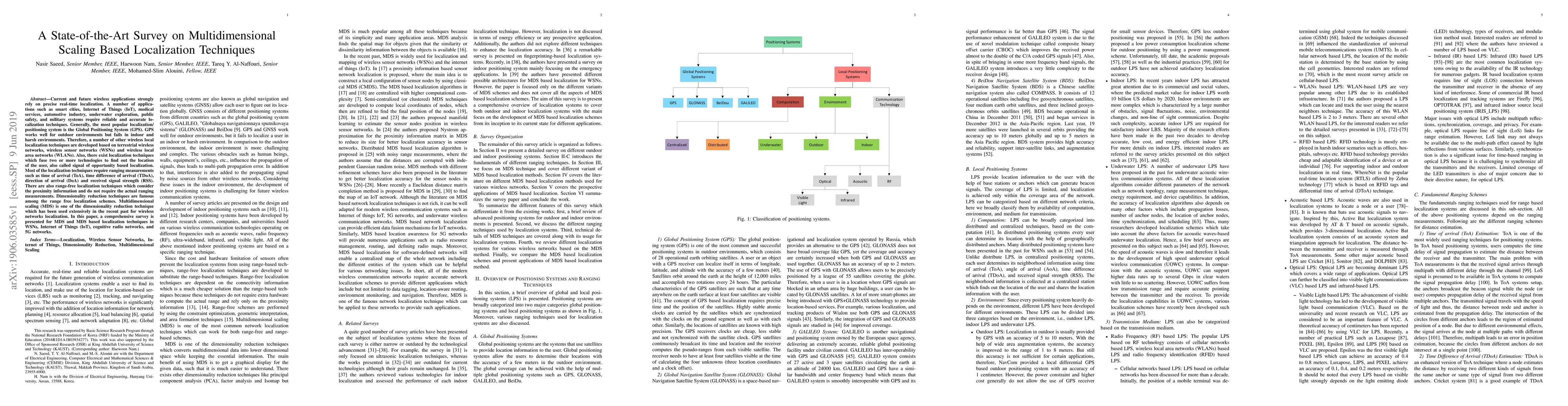 This paper provides a comprehensive survey of multidimensional scaling (MDS) based localization techniques, focusing on their application in wireless sensor networks, IoT, cognitive radio networks, and 5G networks. MDS, a dimensionality reduction method, is highlighted for its role in range-free localization, addressing the limitations of GPS in various environments.