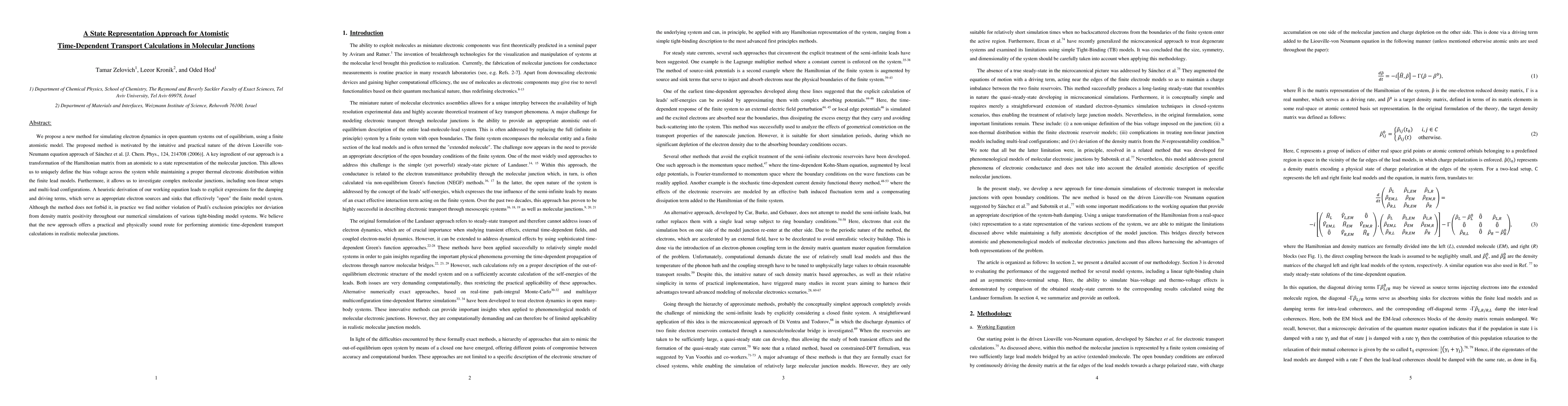 We propose a new method for simulating electron dynamics in open quantum systems out of equilibrium, using a finite atomistic model. The proposed method is motivated by the intuitive and practical nature of the driven Liouville von-Neumann equation approach of S\'anchez et al. [J. Chem. Phys., 124, 214708 (2006)]. A key ingredient of our approach is a transformation of the Hamiltonian matrix from an atomistic to a state representation of the molecular junction. This allows us to uniquely define the bias voltage across the system while maintaining a proper thermal electronic distribution within the finite lead models. Furthermore, it allows us to investigate complex molecular junctions, including non-linear setups and multi-lead configurations. A heuristic derivation of our working equation leads to explicit expressions for the damping and driving terms, which serve as appropriate electron sources and sinks that effectively "open" the finite model system. Although the method does not forbid it, in practice we find neither violation of Pauli's exclusion principles nor deviation from density matrix positivity throughout our numerical simulations of various tight-binding model systems. We believe that the new approach offers a practical and physically sound route for performing atomistic time-dependent transport calculations in realistic molecular junctions.
