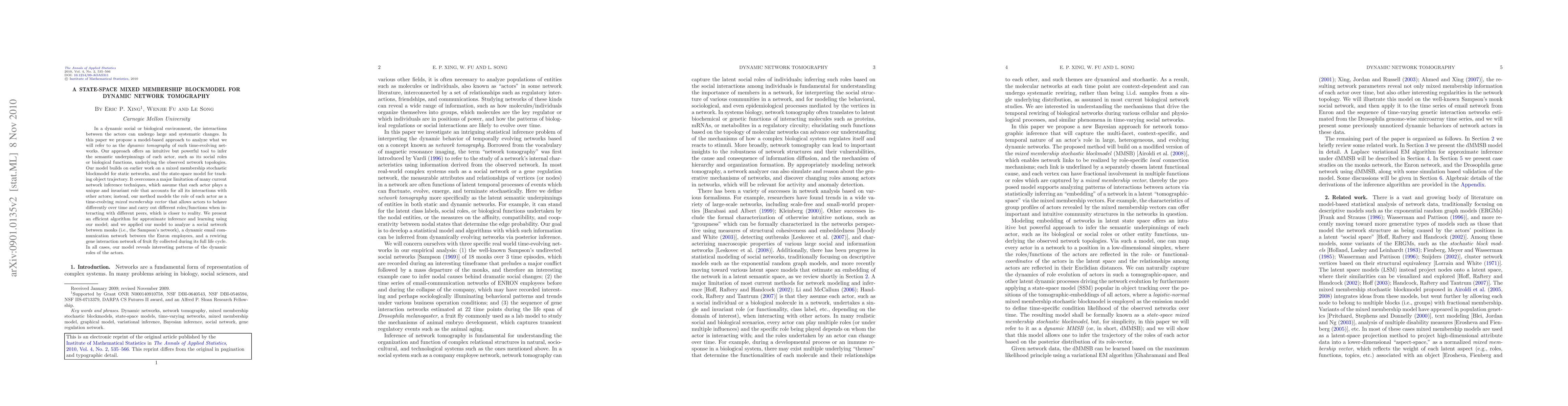In a dynamic social or biological environment, the interactions between the actors can undergo large and systematic changes. In this paper we propose a model-based approach to analyze what we will refer to as the dynamic tomography of such time-evolving networks. Our approach offers an intuitive but powerful tool to infer the semantic underpinnings of each actor, such as its social roles or biological functions, underlying the observed network topologies. Our model builds on earlier work on a mixed membership stochastic blockmodel for static networks, and the state-space model for tracking object trajectory. It overcomes a major limitation of many current network inference techniques, which assume that each actor plays a unique and invariant role that accounts for all its interactions with other actors; instead, our method models the role of each actor as a time-evolving mixed membership vector that allows actors to behave differently over time and carry out different roles/functions when interacting with different peers, which is closer to reality. We present an efficient algorithm for approximate inference and learning using our model; and we applied our model to analyze a social network between monks (i.e., the Sampson's network), a dynamic email communication network between the Enron employees, and a rewiring gene interaction network of fruit fly collected during its full life cycle. In all cases, our model reveals interesting patterns of the dynamic roles of the actors.