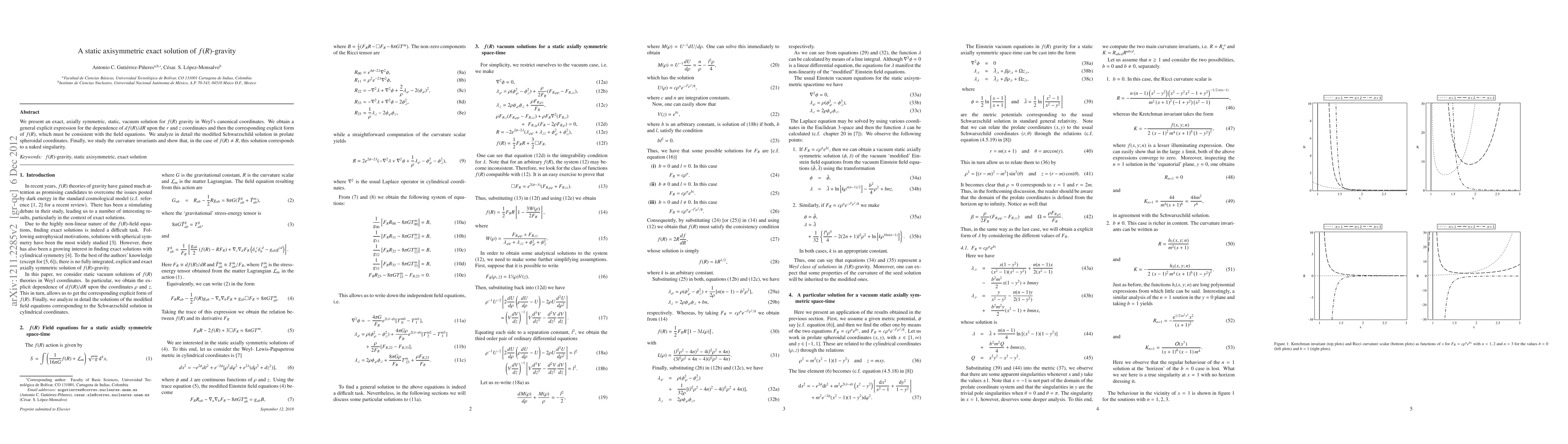 This paper presents an exact, axially symmetric, static vacuum solution for $f(R)$ gravity in Weyl's canonical coordinates and analyzes the modified Schwarzschild solution in prolate spheroidal coordinates, revealing a naked singularity when $f(R) \neq R$.