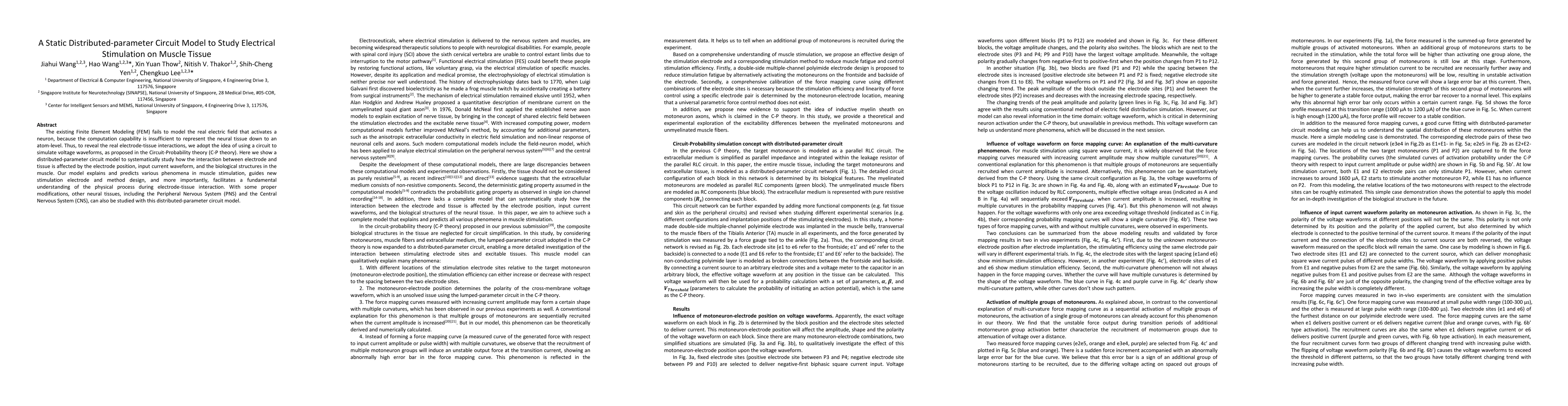 This paper introduces a static distributed-parameter circuit model to study electrode-tissue interactions in neuromuscular stimulation, explaining phenomena like lower activation thresholds for motoneurons. It suggests the model's potential for broader applications in neural tissues.