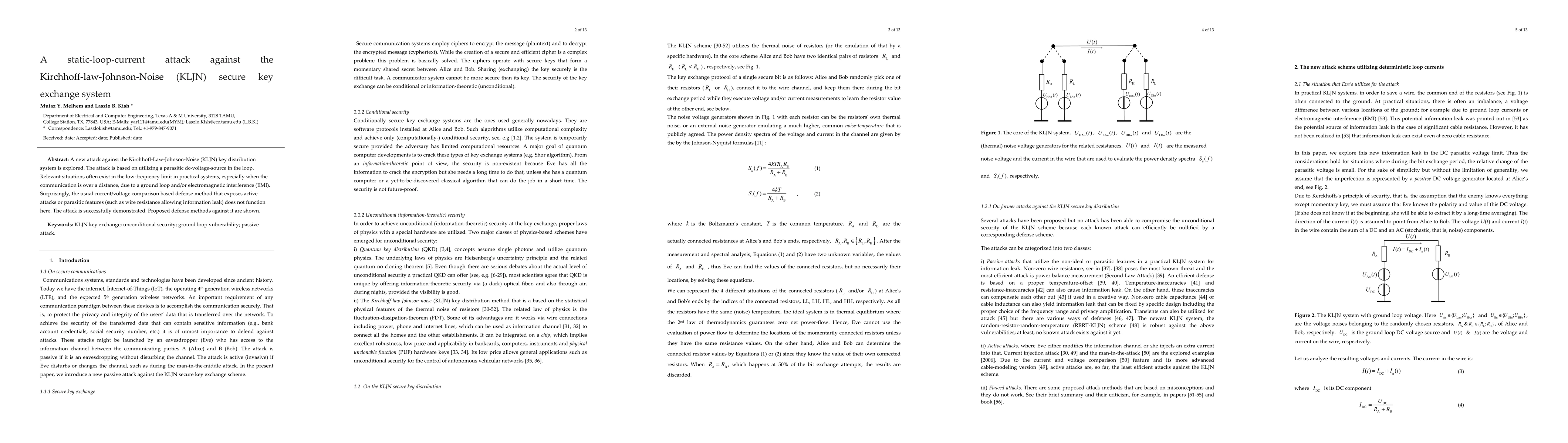 This paper presents a static-loop-current attack exploiting parasitic dc-voltage-sources in the Kirchhoff-Law-Johnson-Noise (KLJN) secure key exchange system, particularly effective in low-frequency scenarios due to ground loops or electromagnetic interference. Traditional defense methods fail to counter this attack, which is demonstrated successfully, along with proposed countermeasures.