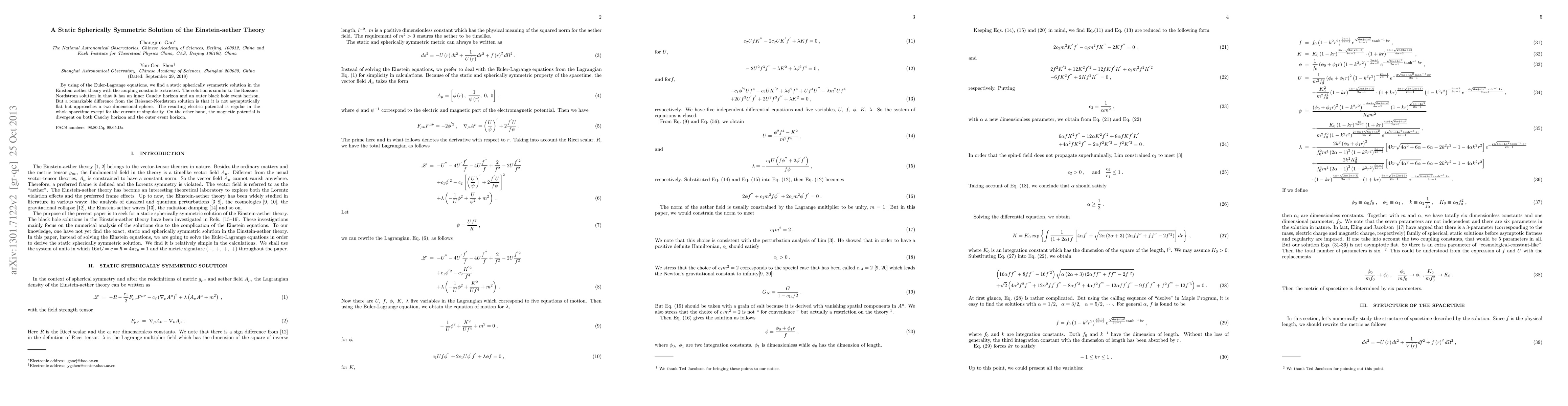 Researchers found a static spherically symmetric solution in the Einstein-aether theory that has an inner Cauchy horizon and outer event horizon, but approaches a two-dimensional sphere instead of being asymptotically flat.