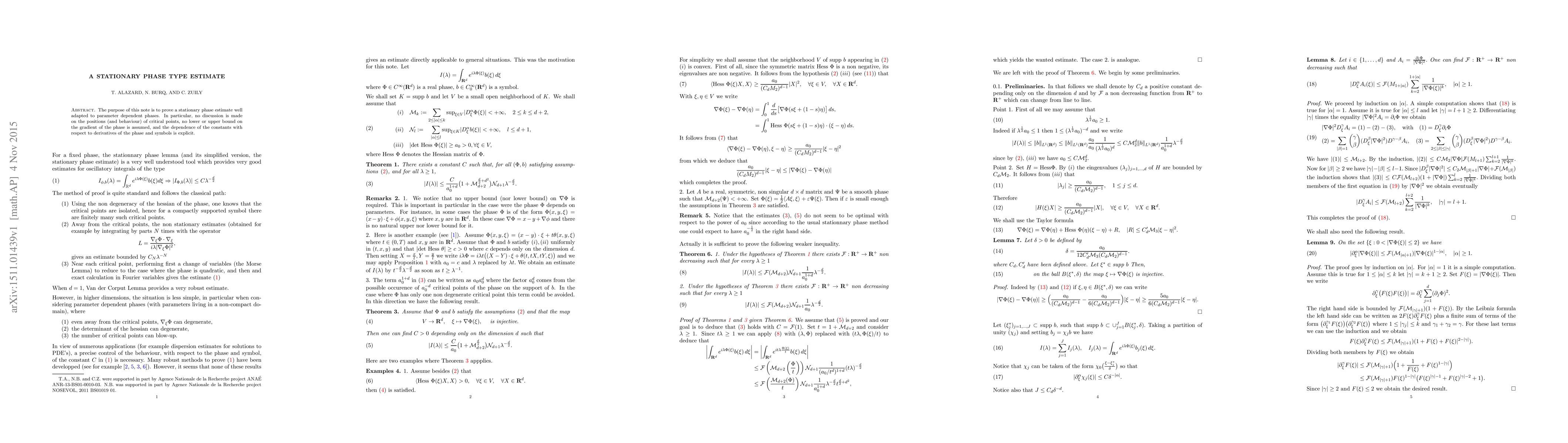 This research paper presents a proof for a stationary phase estimate, specifically tailored for parameter-dependent phases. It uniquely does not require assumptions on critical point positions or gradient bounds, and clearly links constant dependence to phase and symbol derivatives.