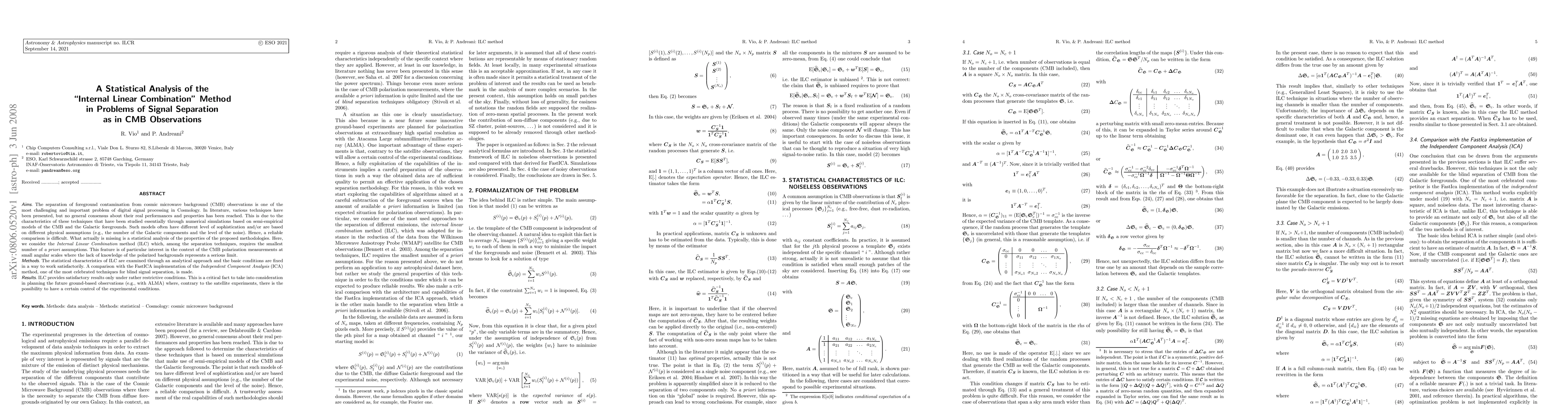 AIMS: The separation of foreground contamination from cosmic microwave background (CMB) observations is one of the most challenging and important problem of digital signal processing in Cosmology. In literature, various techniques have been presented, but no general consensus about their real performances and properties has been reached. This is due to the characteristics of these techniques that have been studied essentially through numerical simulations based on semi-empirical models of the CMB and the Galactic foregrounds. Such models often have different level of sophistication and/or are based on different physical assumptions (e.g., the number of the Galactic components and the level of the noise). Hence, a reliable comparison is difficult. What actually is missing is a statistical analysis of the properties of the proposed methodologies. Here, we consider the "Internal Linear Combination" method (ILC) which, among the separation techniques, requires the smallest number of "a priori" assumptions. This feature is of particular interest in the context of the CMB polarization measurements at small angular scales where the lack of knowledge of the polarized backgrounds represents a serious limit. METHODS: The statistical characteristics of ILC are examined through an analytical approach and the basic conditions are fixed in a way to work satisfactorily. RESULTS: ILC provides satisfactory results only under rather restrictive conditions. This is a critical fact to take into consideration in planning the future ground-based observations (e.g., with ALMA) where, contrary to the satellite experiments, there is the possibility to have a certain control of the experimental conditions.