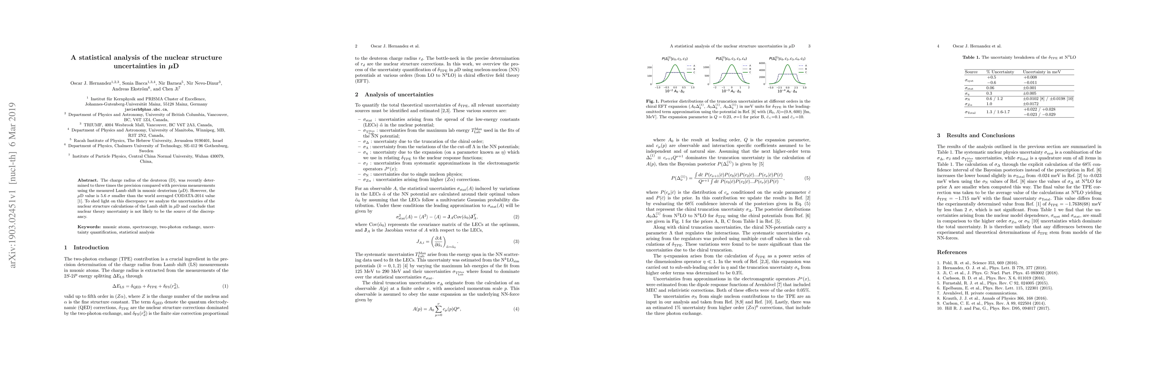 A study investigates the discrepancy between a recent measurement of the deuteron's charge radius using muonic deuterium and the world-averaged CODATA-2014 value, concluding that nuclear theory uncertainty is unlikely to be the cause. The analysis focuses on uncertainties in nuclear structure calculations of the Lamb shift in muD.