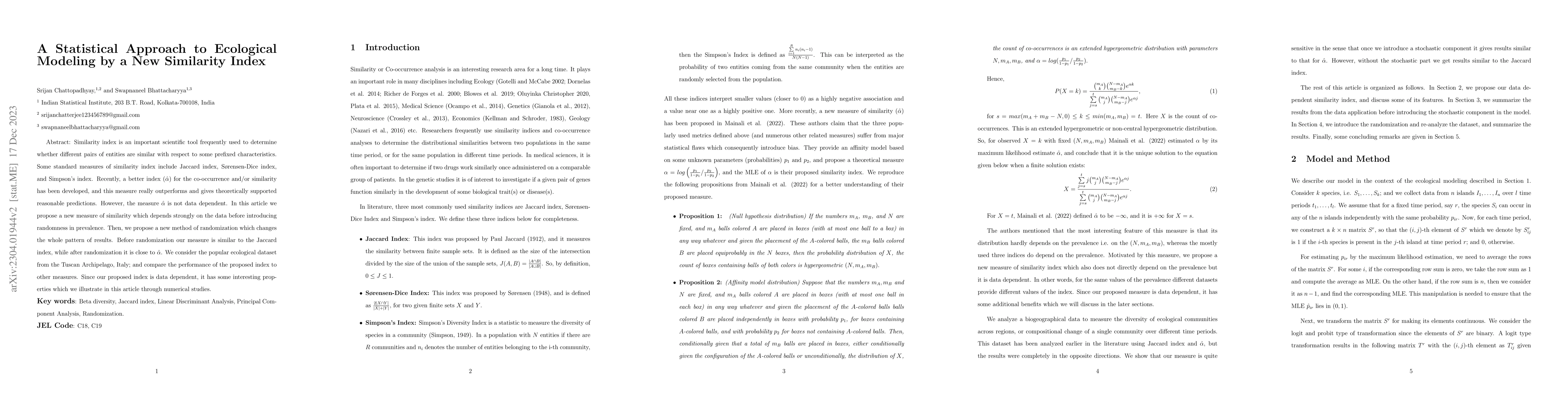This paper introduces a new data-dependent similarity index that enhances ecological modeling by incorporating a novel randomization method, comparing its performance to traditional indices like Jaccard and $\hat{\alpha}$ using the Tuscan Archipelago dataset. The proposed index shows promising properties through numerical studies.