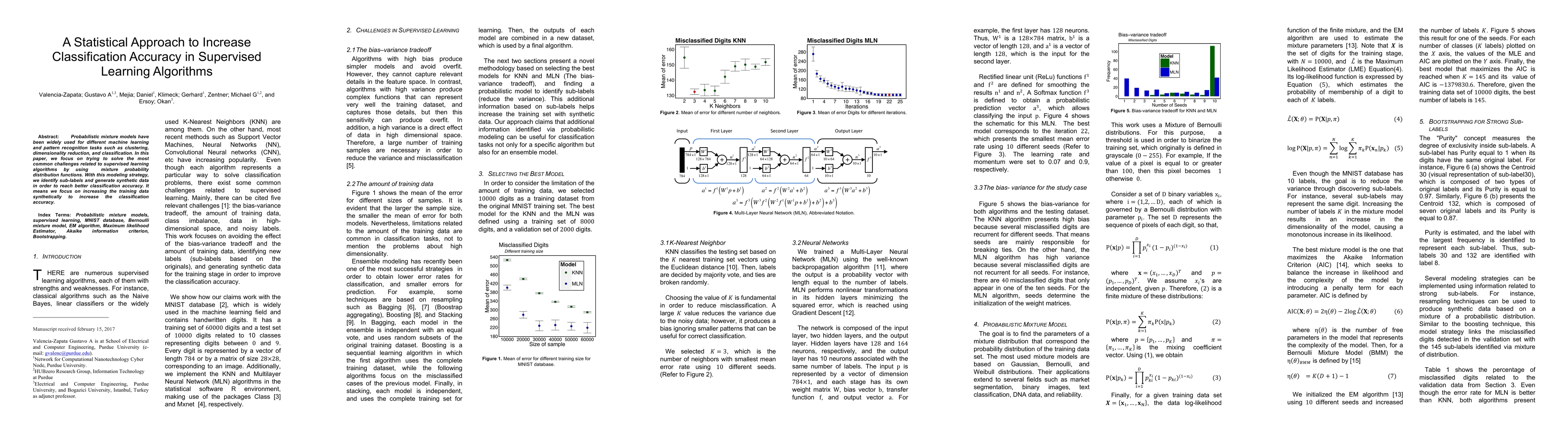 This paper proposes a statistical approach using mixture probability distribution functions to enhance classification accuracy in supervised learning algorithms by identifying sub-labels and generating synthetic data to augment training data.