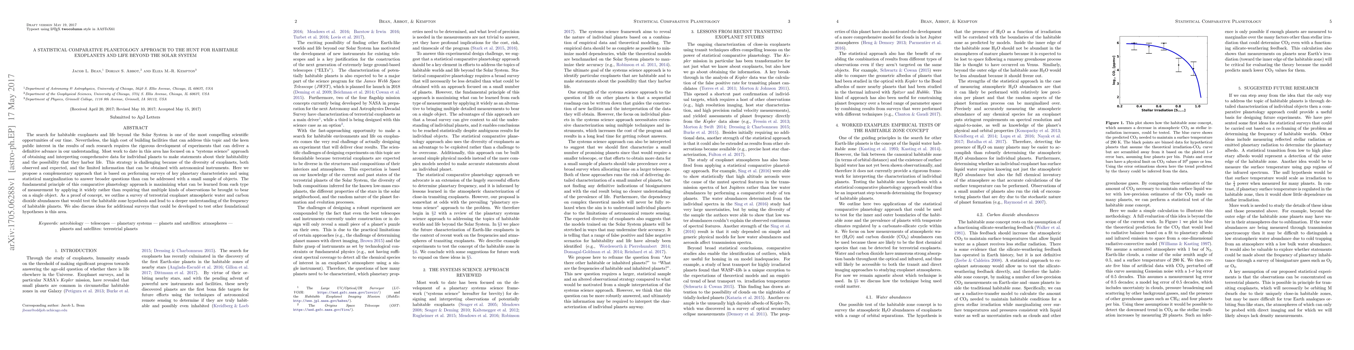 This paper proposes a statistical comparative planetology approach to enhance the search for habitable exoplanets, emphasizing surveys of key planetary characteristics and statistical analysis over individual planet studies. The aim is to maximize learning from each measurement by applying it broadly, illustrated by a proposed survey of terrestrial exoplanet atmospheric water and carbon dioxide abundances.