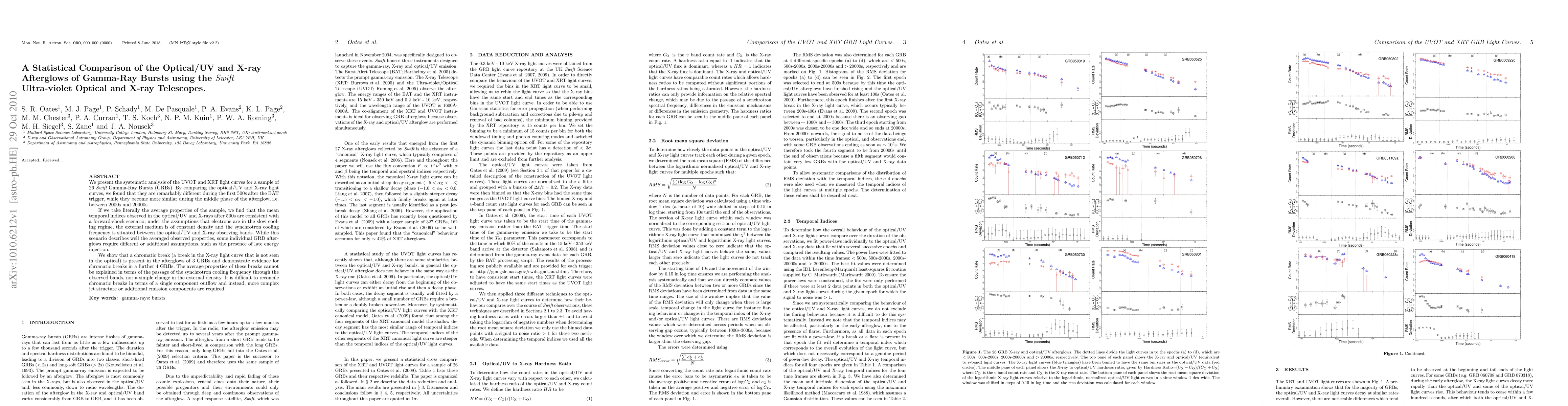 We present the systematic analysis of the UVOT and XRT light curves for a sample of 26 Swift Gamma-Ray Bursts (GRBs). By comparing the optical/UV and X-ray light curves, we found that they are remarkably different during the first 500s after the BAT trigger, while they become more similar during the middle phase of the afterglow, i.e. between 2000s and 20000s. If we take literally the average properties of the sample, we find that the mean temporal indices observed in the optical/UV and X-rays after 500s are consistent with a forward-shock scenario, under the assumptions that electrons are in the slow cooling regime, the external medium is of constant density and the synchrotron cooling frequency is situated between the optical/UV and X-ray observing bands. While this scenario describes well the averaged observed properties, some individual GRB afterglows require different or additional assumptions, such as the presence of late energy injection. We show that a chromatic break (a break in the X-ray light curve that is not seen in the optical) is present in the afterglows of 3 GRBs and demonstrate evidence for chromatic breaks in a further 4 GRBs. The average properties of these breaks cannot be explained in terms of the passage of the synchrotron cooling frequency through the observed bands, nor a simple change in the external density. It is difficult to reconcile chromatic breaks in terms of a single component outflow and instead, more complex jet structure or additional emission components are required.