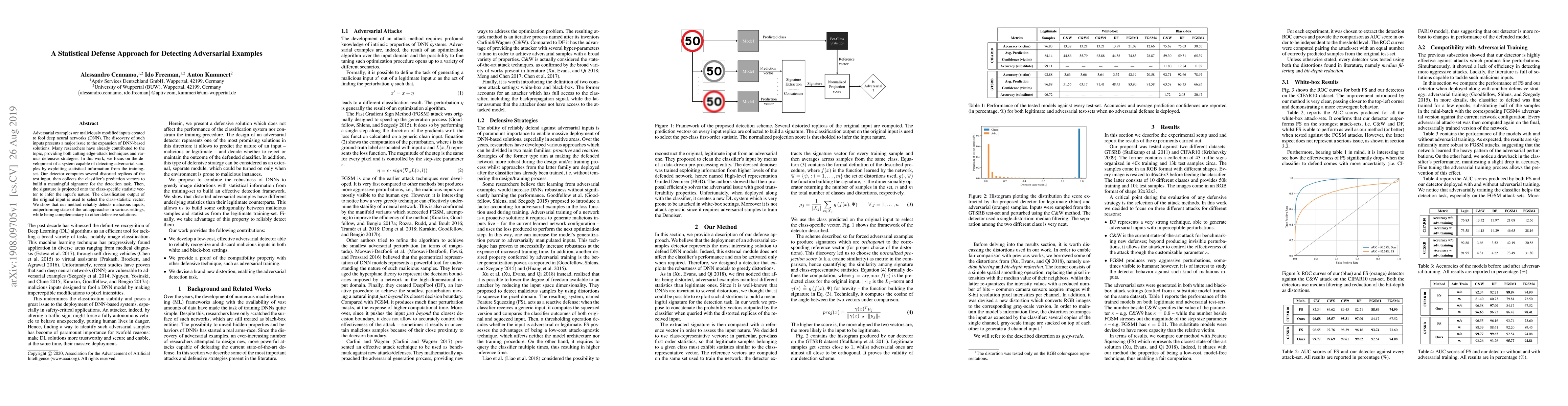 This paper proposes a statistical defense system to detect adversarial examples in deep neural networks by generating distorted replicas of test inputs and analyzing the classifier's prediction vectors to create a signature. The method outperforms existing approaches and complements other defensive strategies.