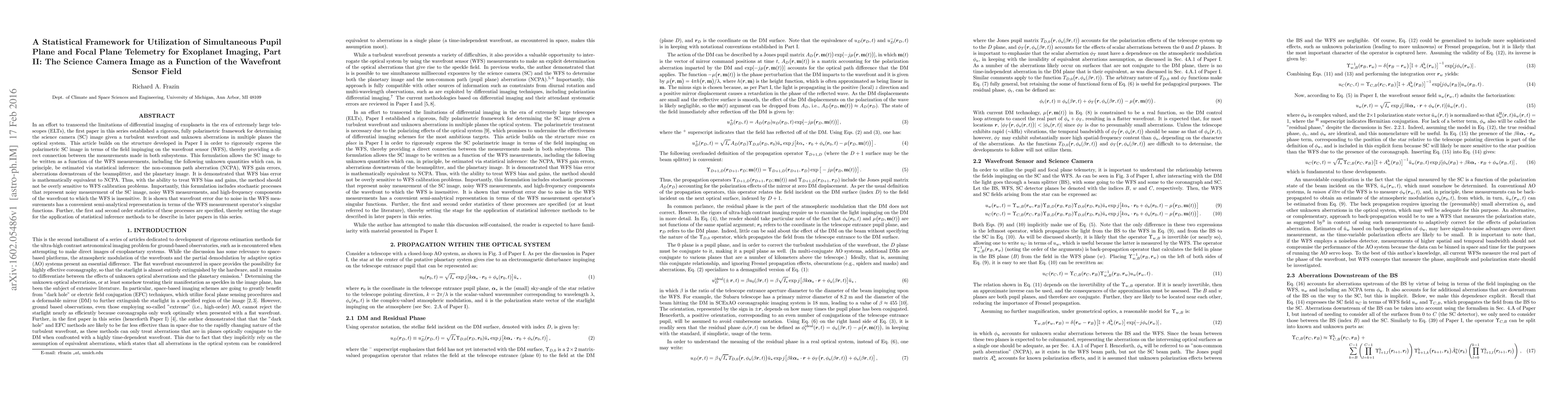 In an effort to transcend the limitations of differential imaging of exoplanets in the era of extremely large telescopes (ELTs), the first paper in this series established a rigorous, fully polarimetric framework for determining the science camera (SC) image given a turbulent wavefront and unknown aberrations in multiple planes the optical system. This article builds on the structure developed in Paper I in order to rigorously express the polarimetric SC image in terms of the field impinging on the wavefront sensor (WFS), thereby providing a direct connection between the measurements made in both subsystems. This formulation allows the SC image to be written as a function of the WFS measurements, including the following unknown quantities which can, in principle, be estimated via statistical inference: the non-common path aberration (NCPA), WFS gain errors, aberrations downstream of the beamsplitter, and the planetary image. It is demonstrated that WFS bias error is mathematically equivalent to NCPA. Thus, with the ability to treat WFS bias and gains, the method should not be overly sensitive to WFS calibration problems. Importantly, this formulation includes stochastic processes that represent noisy measurement of the SC image, noisy WFS measurements, and high-frequency components of the wavefront to which the WFS is insensitive. It is shown that wavefront error due to noise in the WFS measurements has a convenient semi-analytical representation in terms of the WFS measurement operator's singular functions. Further, the first and second order statistics of these processes are specified, thereby setting the stage for the application of statistical inference methods to be describe in later papers in this series.