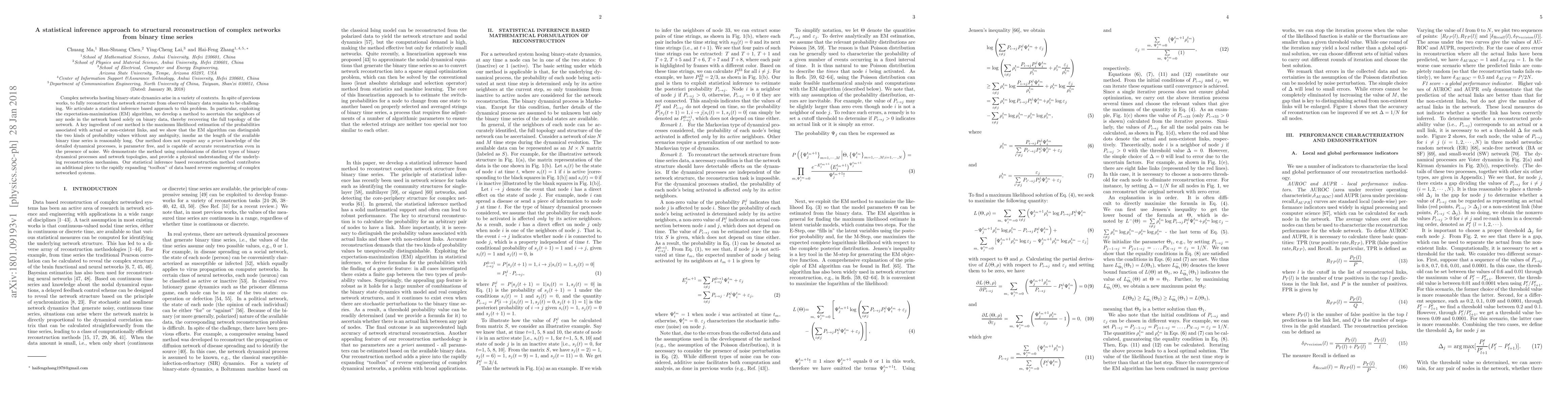 Researchers developed a statistical inference approach to reconstruct complex networks from binary time series data, achieving accurate reconstruction even with noise and no prior knowledge of the system's dynamics.