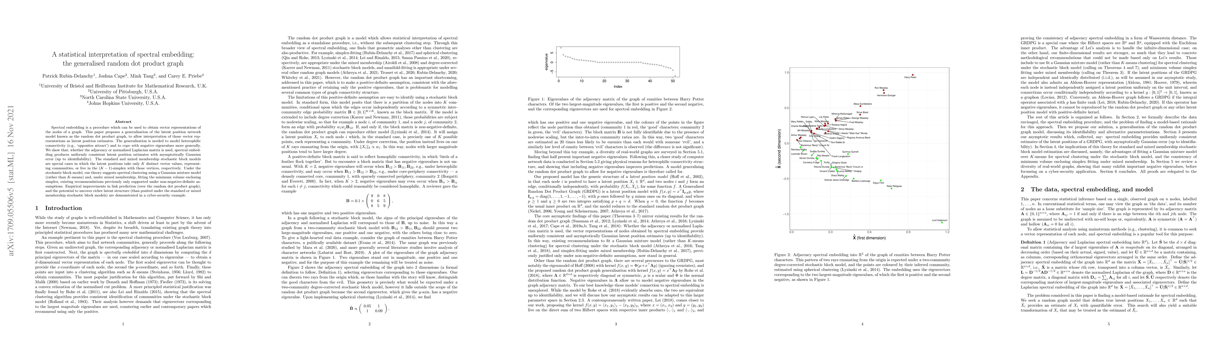 This paper proposes a generalised random dot product graph to interpret spectral embedding for latent position estimates, accommodating heterophilic connectivity and negative eigenvalues. It demonstrates consistent latent position estimates and suggests improved spectral clustering methods, showing empirical benefits in link prediction and latent structure discovery in a cyber-security application.