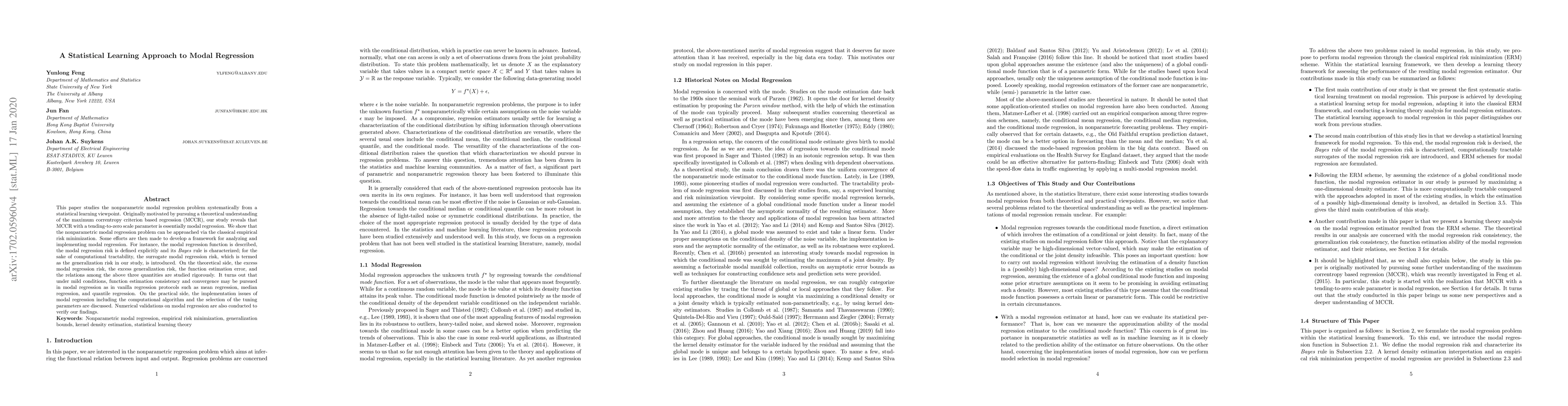 This paper explores nonparametric modal regression through statistical learning, demonstrating that the maximum correntropy criterion regression (MCCR) with a small scale parameter is essentially modal regression. It develops a framework for analyzing and implementing modal regression, showing its consistency and robustness, and discusses computational algorithms and parameter selection.