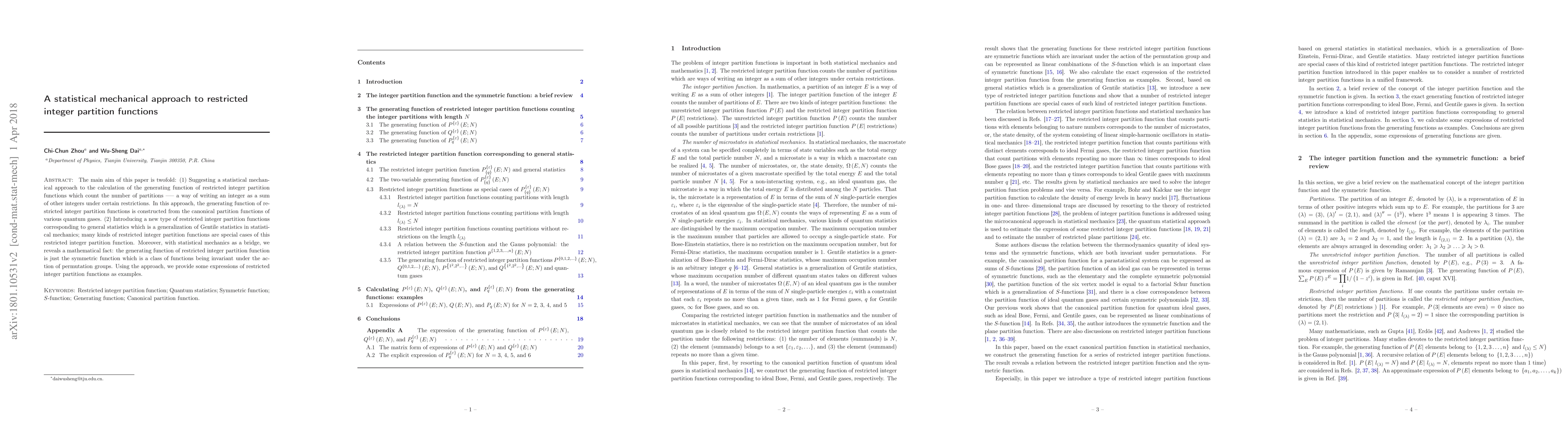 This paper proposes a statistical mechanical approach to determine the generating function for restricted integer partition functions by utilizing canonical partition functions of quantum gases. It also introduces a generalized type of restricted partition function that encompasses various specific cases, revealing that the generating function is a symmetric function invariant under permutation groups.