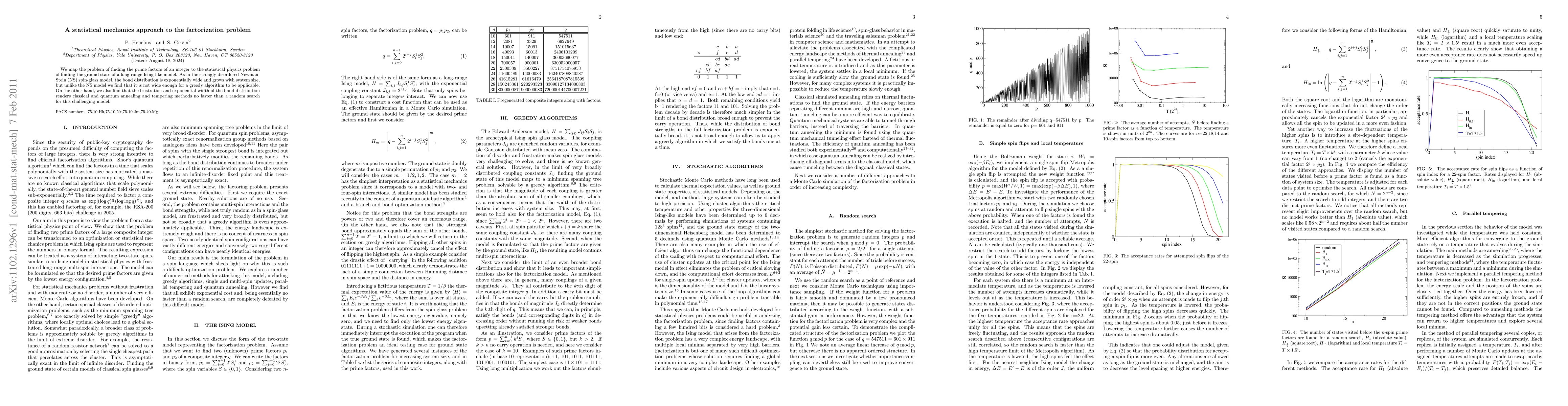 Researchers applied statistical mechanics to the prime factorization problem, finding that a traditional spin-glass model is not suitable for solving it efficiently. Instead, they showed that even advanced methods like classical and quantum annealing are no faster than random search for this challenging model.