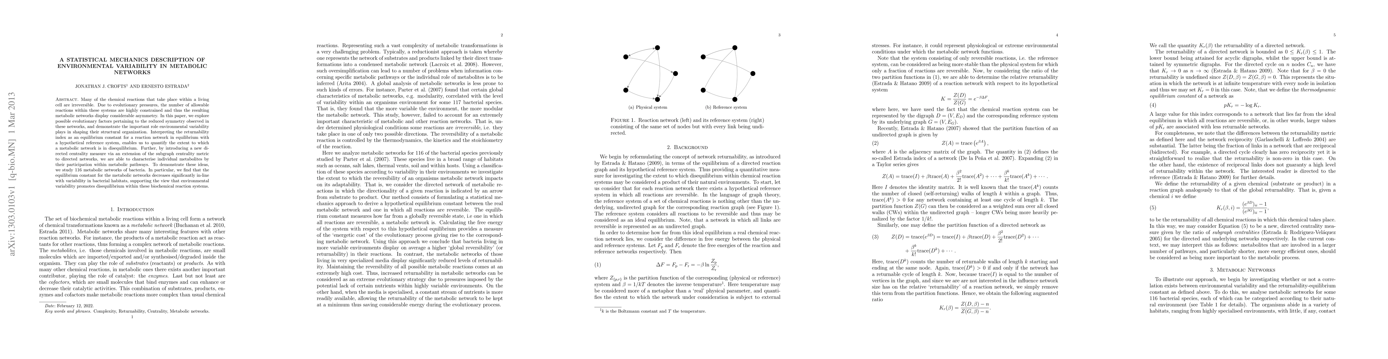 Many of the chemical reactions that take place within a living cell are irreversible. Due to evolutionary pressures, the number of allowable reactions within these systems are highly constrained and thus the resulting metabolic networks display considerable asymmetry. In this paper, we explore possible evolutionary factors pertaining to the reduced symmetry observed in these networks, and demonstrate the important role environmental variability plays in shaping their structural organization. Interpreting the returnability index as an equilibrium constant for a reaction network in equilibrium with a hypothetical reference system, enables us to quantify the extent to which a metabolic network is in disequilibrium. Further, by introducing a new directed centrality measure via an extension of the subgraph centrality metric to directed networks, we are able to characterise individual metabolites by their participation within metabolic pathways. To demonstrate these ideas, we study 116 metabolic networks of bacteria. In particular, we find that the equilibrium constant for the metabolic networks decreases significantly in-line with variability in bacterial habitats, supporting the view that environmental variability promotes disequilibrium within these biochemical reaction systems.